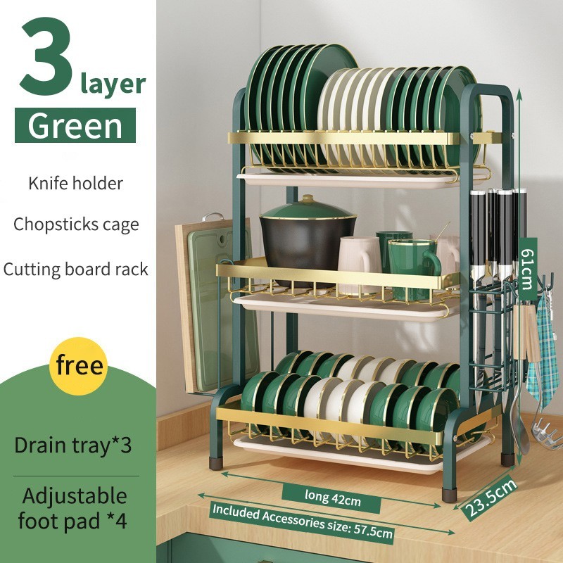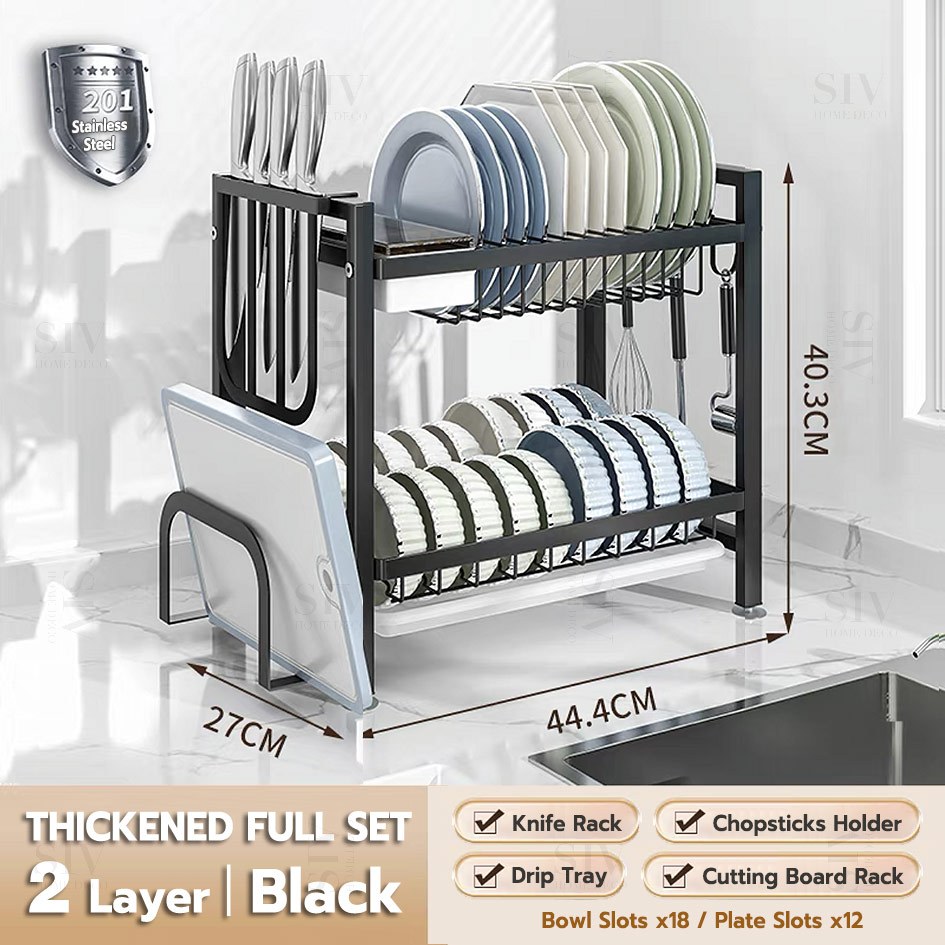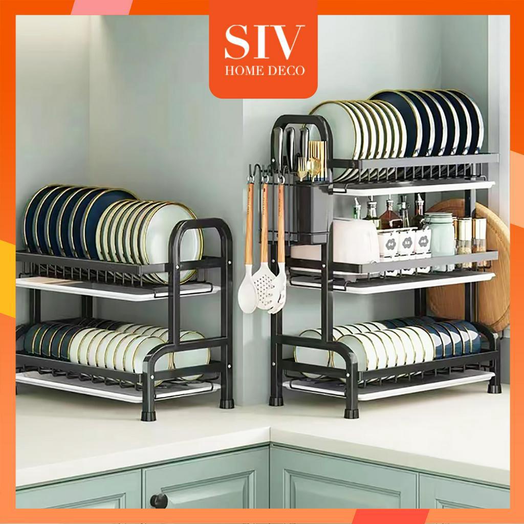SIV 2/3 Tier Rak Pinggan Dish Rack Stainless Steel Dish Drainer Rak Dish Plate Drying Storage Rack Organizer