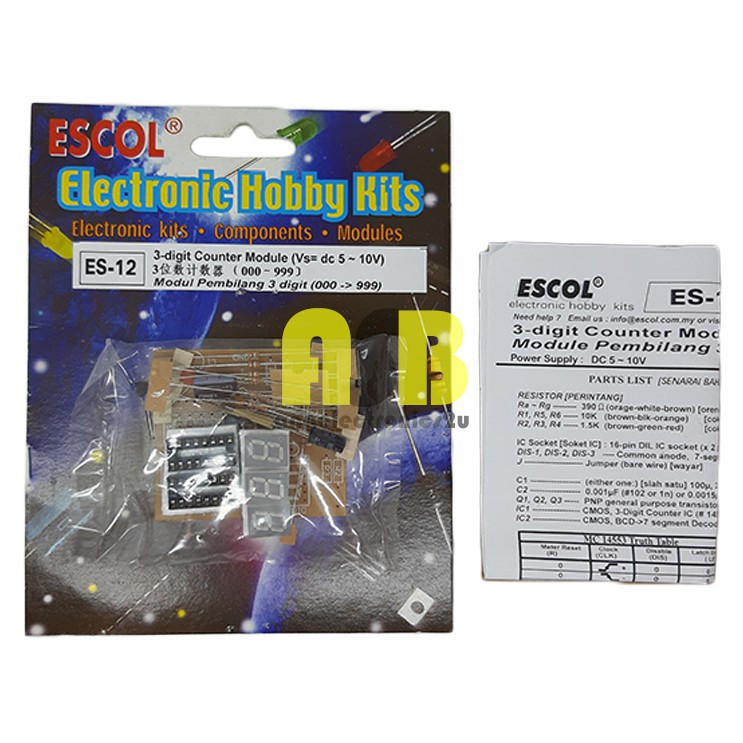 (1pc) ESCOL ES-12 3-digit Counter Module ( VS= dc 5 ~ 10 V ) Electronic Hobby Kits ( 213010013 )