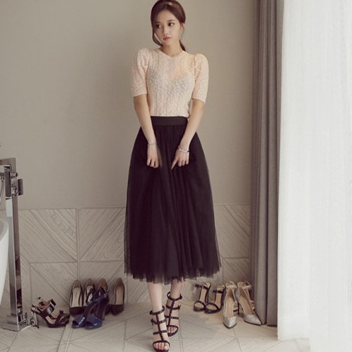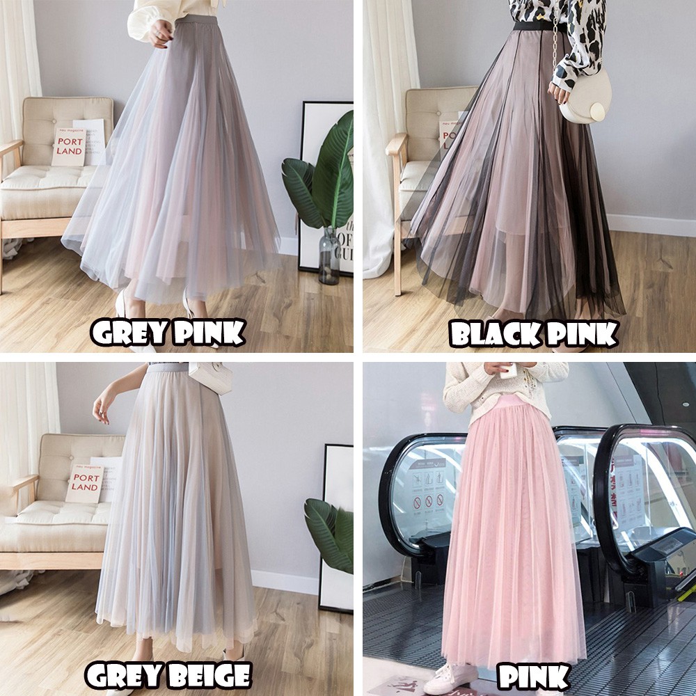 McJoden - PRINCESS (3Layers) Tutu Tulle Skirts Elastic High Waist Long Skirt Women's Tutu Maxi Pleated Skirt