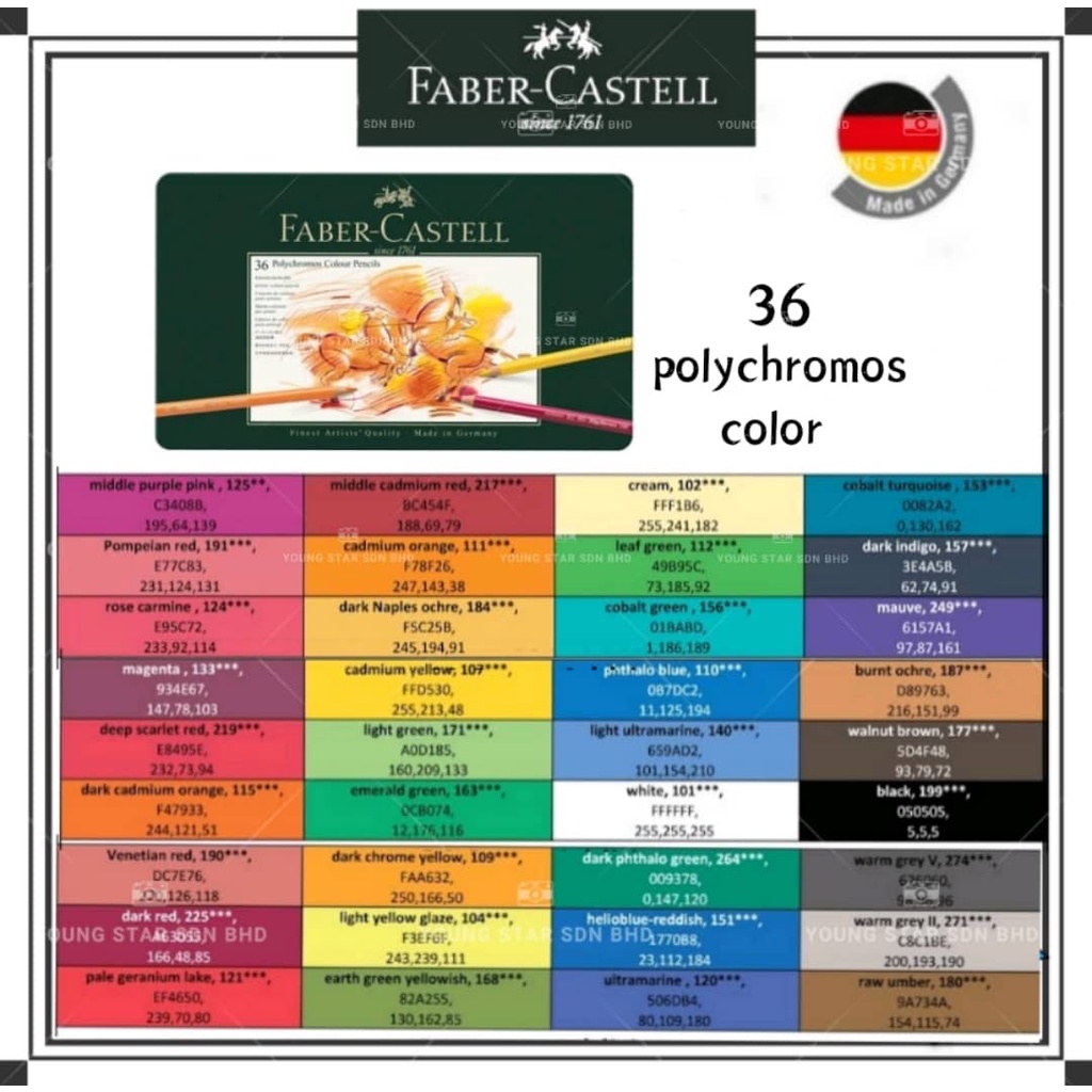 Faber-Castell Polychromos 36 Artist Colour Pencil in tin ( 110036 )