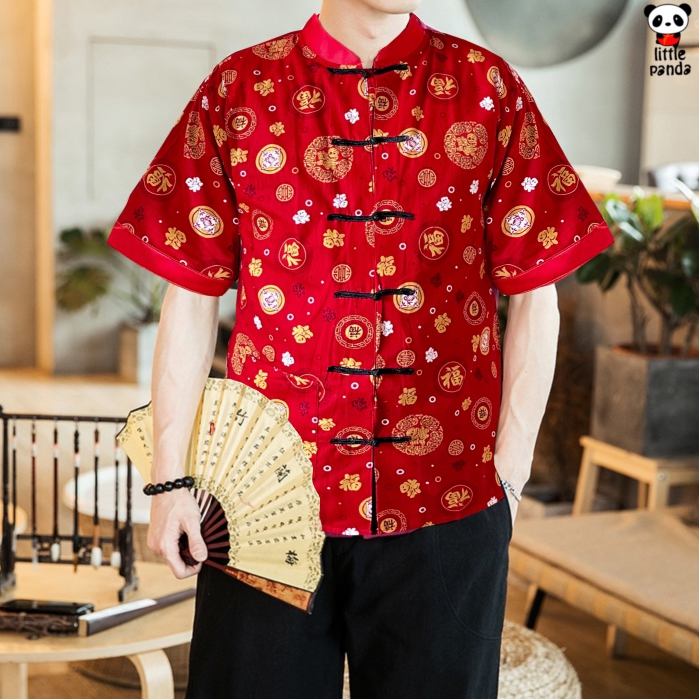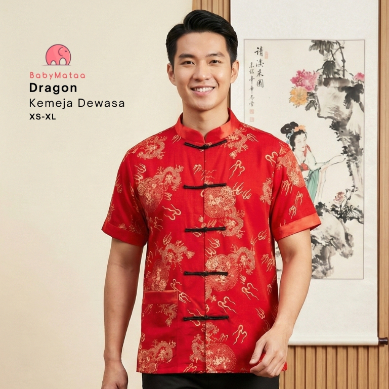 KEMEJA Cheongsam Shirt for Boys, Teenagers, Adults, Chinese New Year Clothes for Men, Couple, Dad & Boy, Hanfu Uniform Baju Batik Lelaki Tang Suit