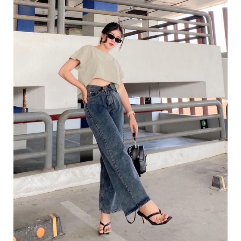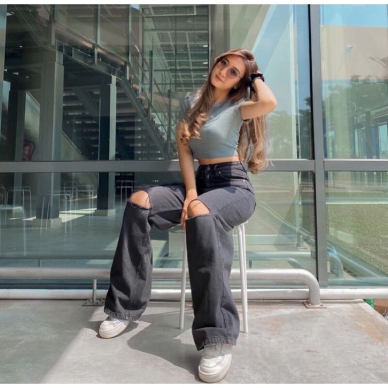 Women's ripped jeans culottes, high-waist denim jeans, girls' cullote cutbray Korean style flare jeans bootcut jeans wide leg jeans