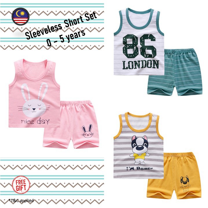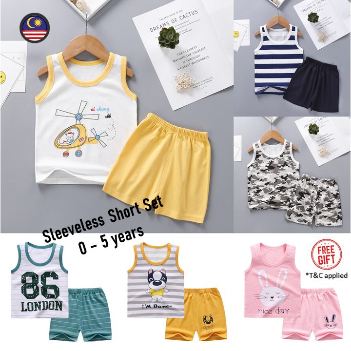 Set Singlet Seluar Pendek Sleeveless Short Baju Bayi Baby Clothing New Born Infant Anak Lelaki Perempuan Kid Boy Girl S9