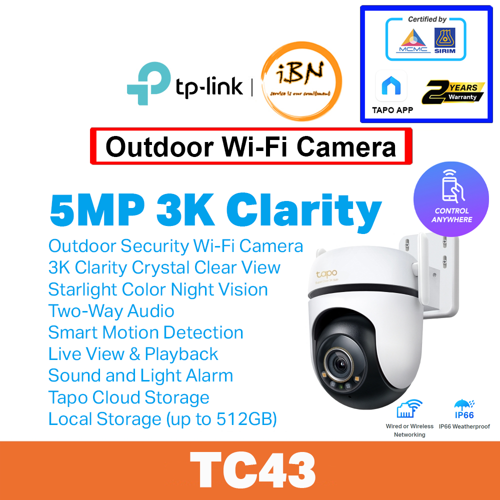 TP-Link Tapo C500/C510W/C520WS/C530WS/TC40/TC41/TC42/TC43/TC40GW Outdoor 360° Pan/Tilt WiFi Camera Waterproof CCTV @ IBN