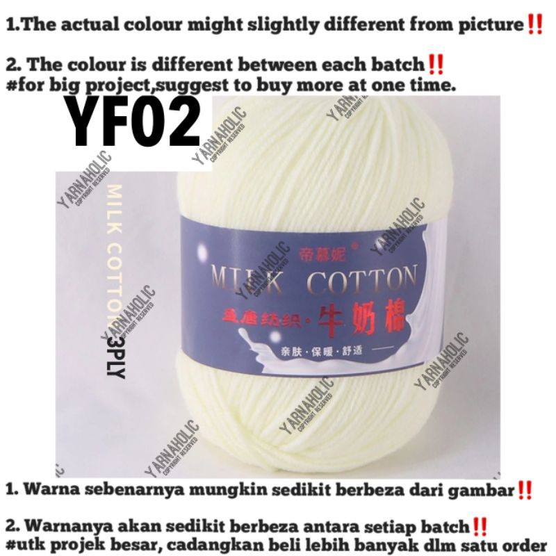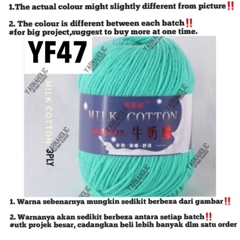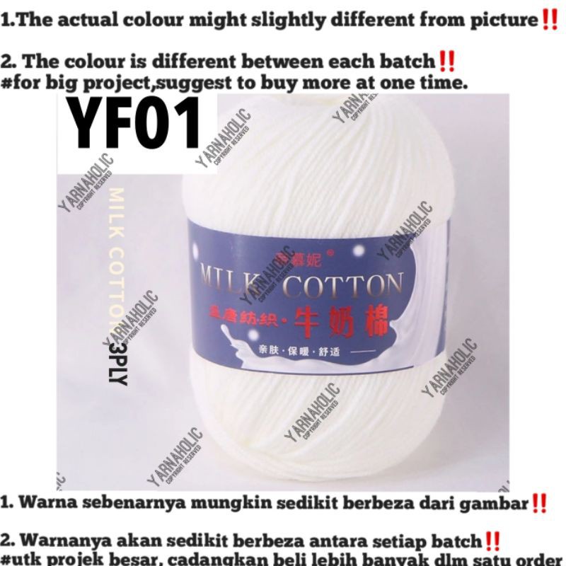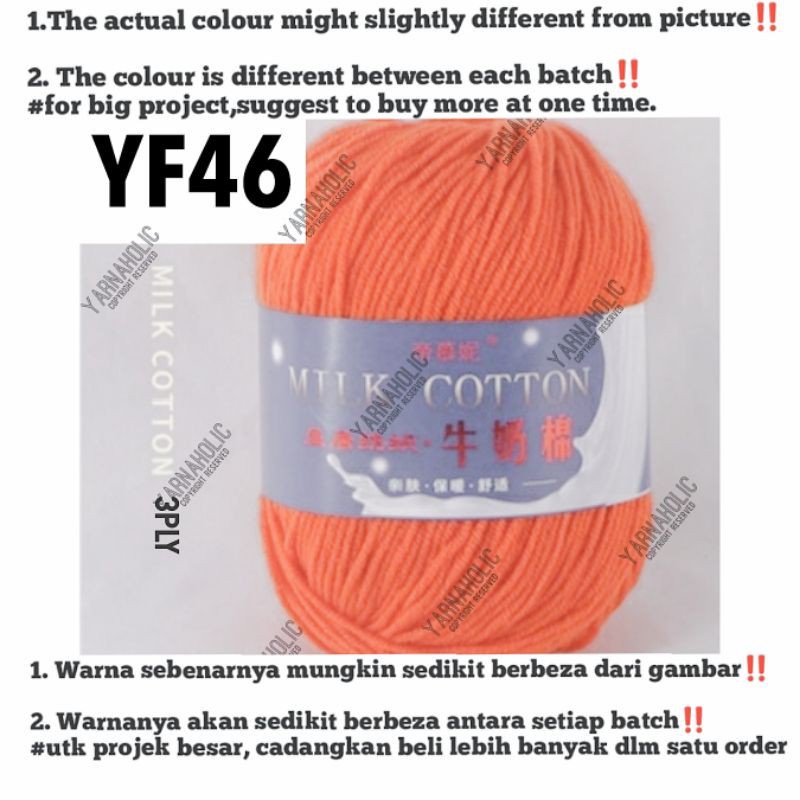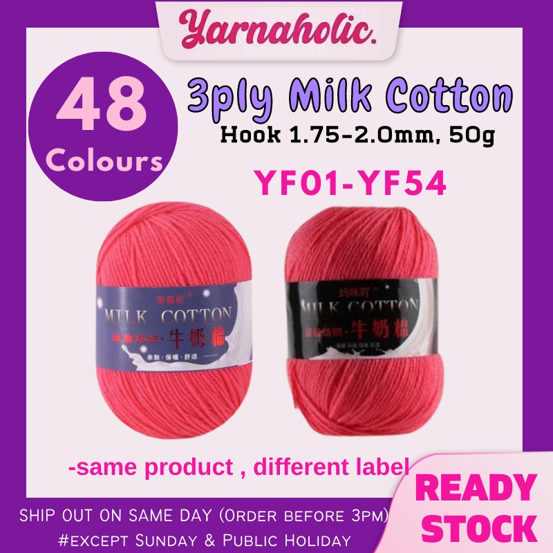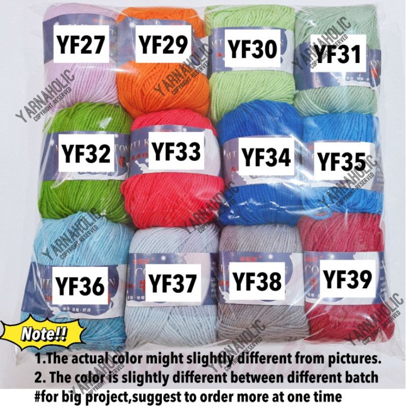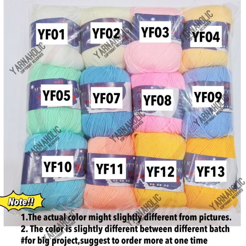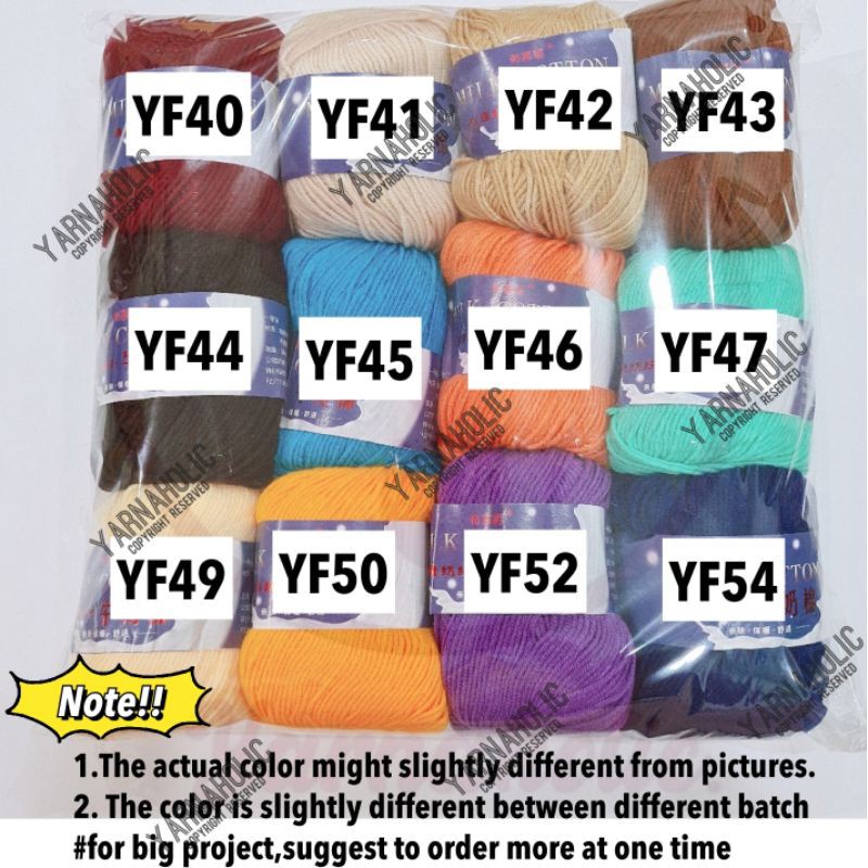 48 Warna Benang Kait Milk Cotton Yarn 3ply/ 3ply Yarn Milk Cotton Knitting Yarn (YF01-YF48)