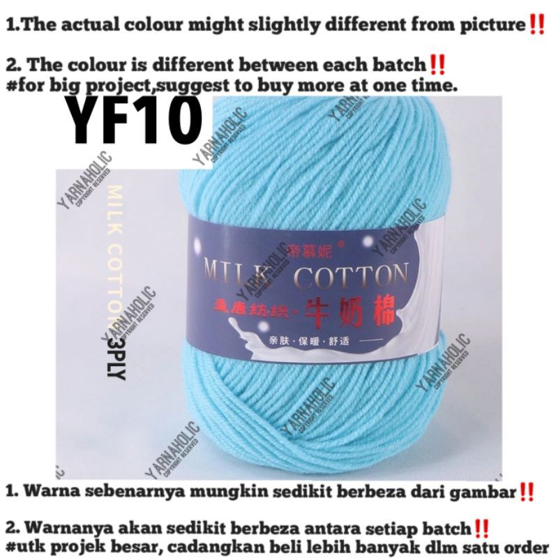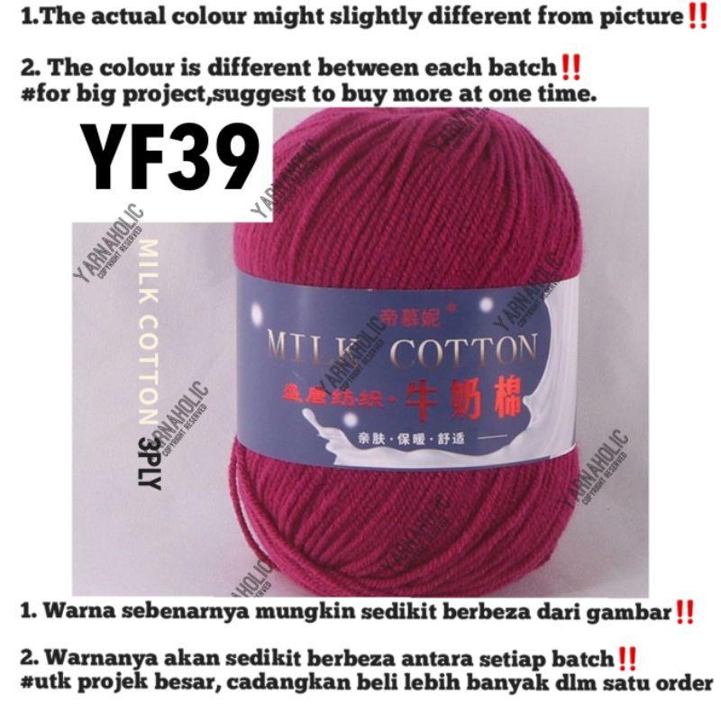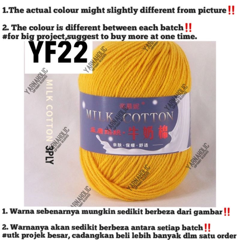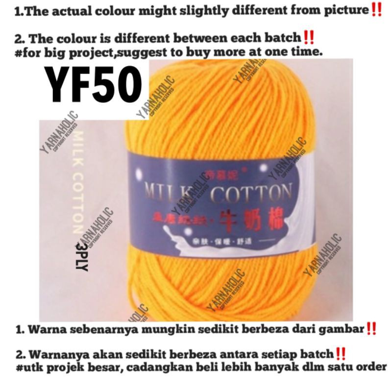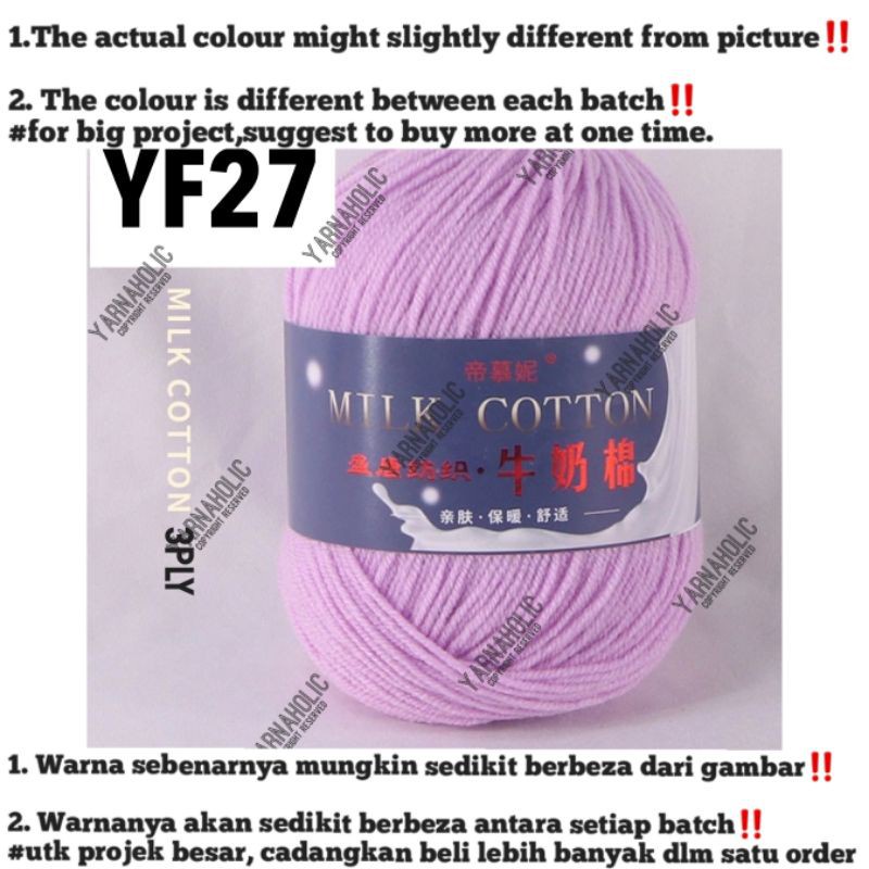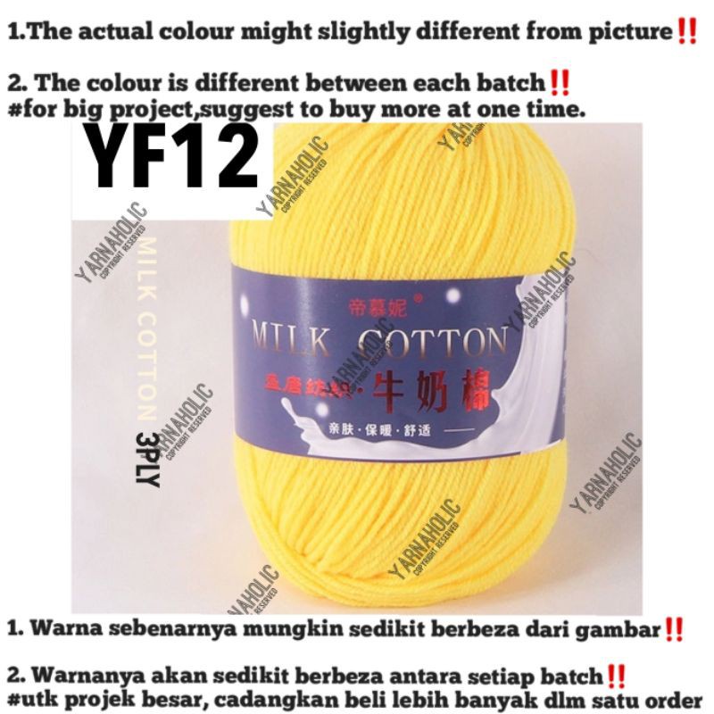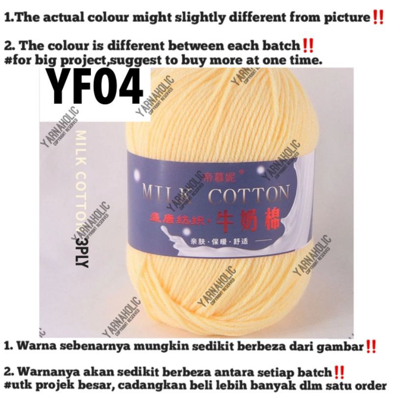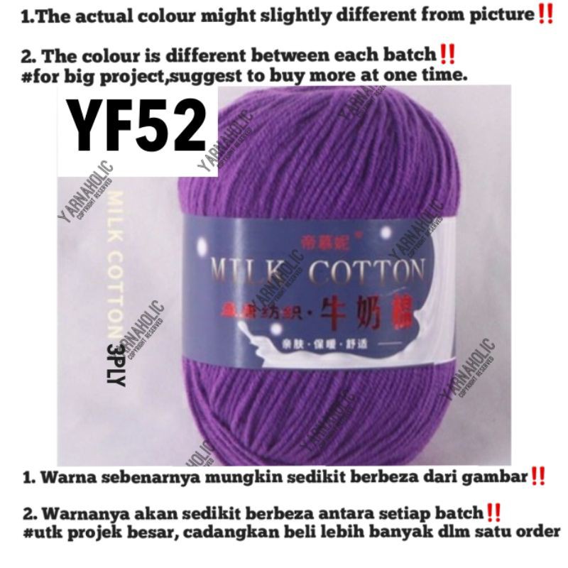48 Warna Benang Kait Milk Cotton Yarn 3ply/ 3ply Yarn Milk Cotton Knitting Yarn (YF01-YF48)