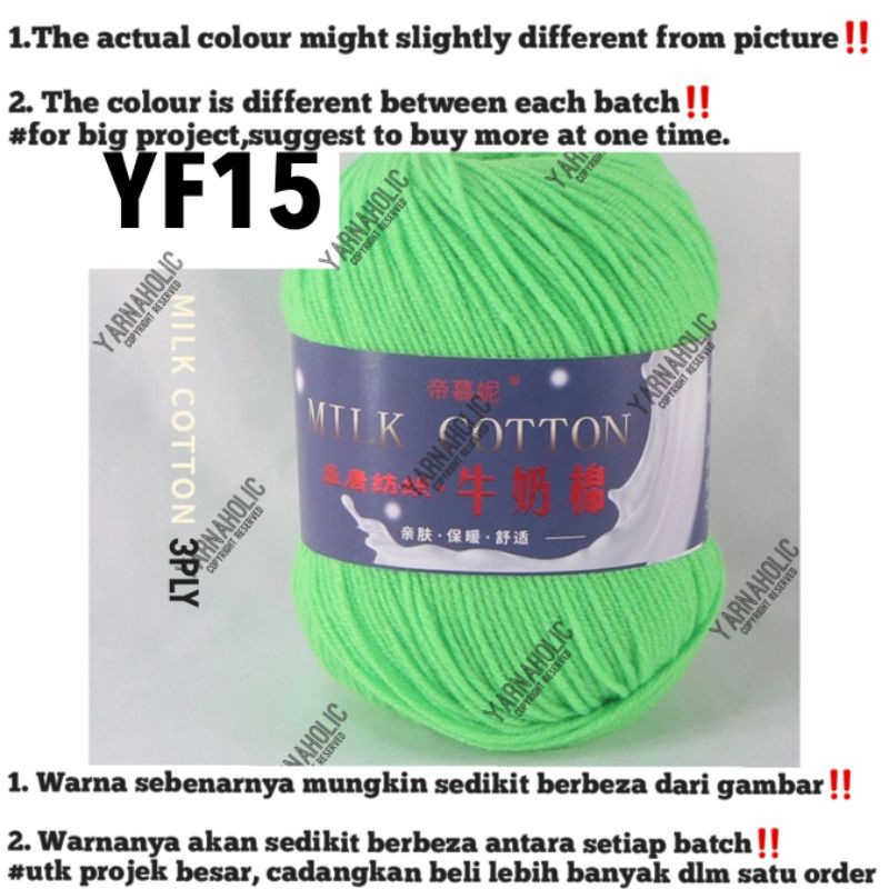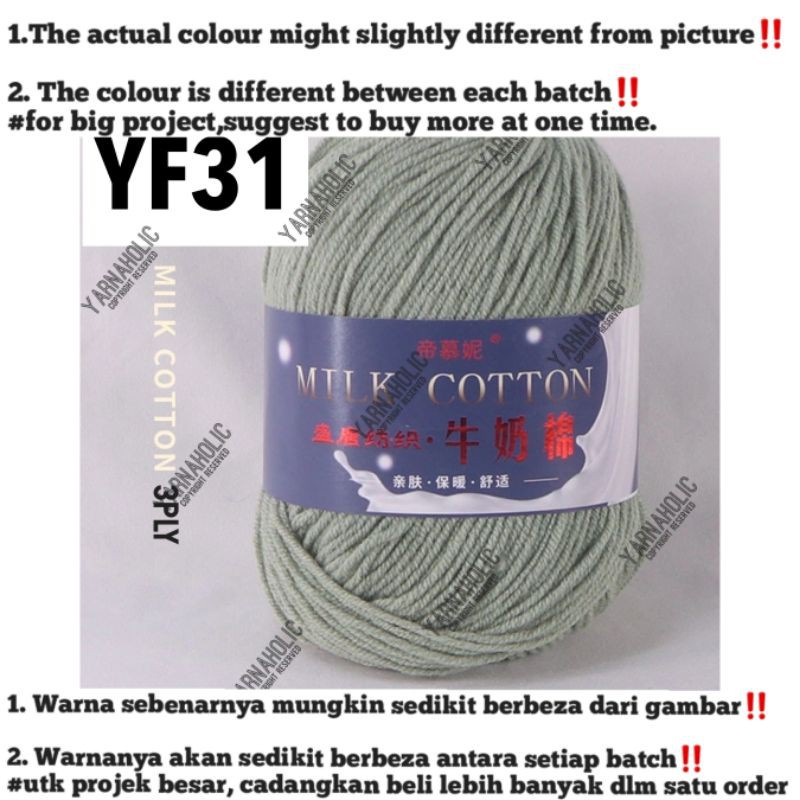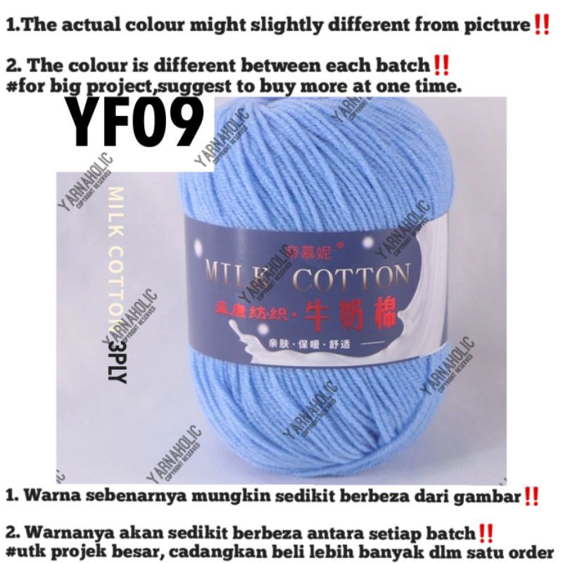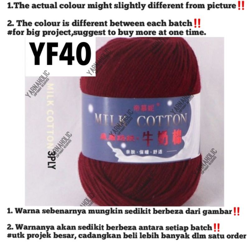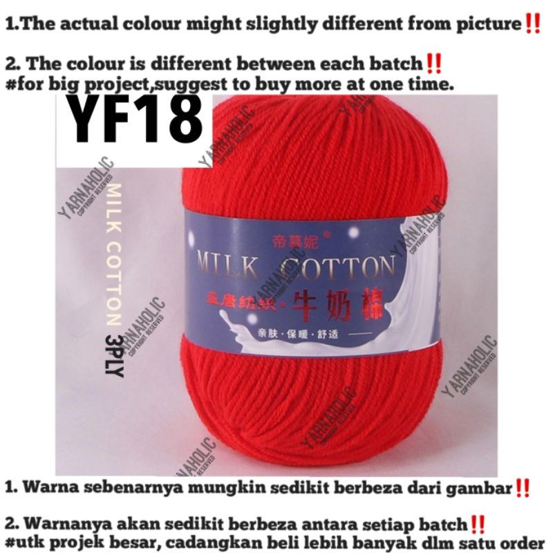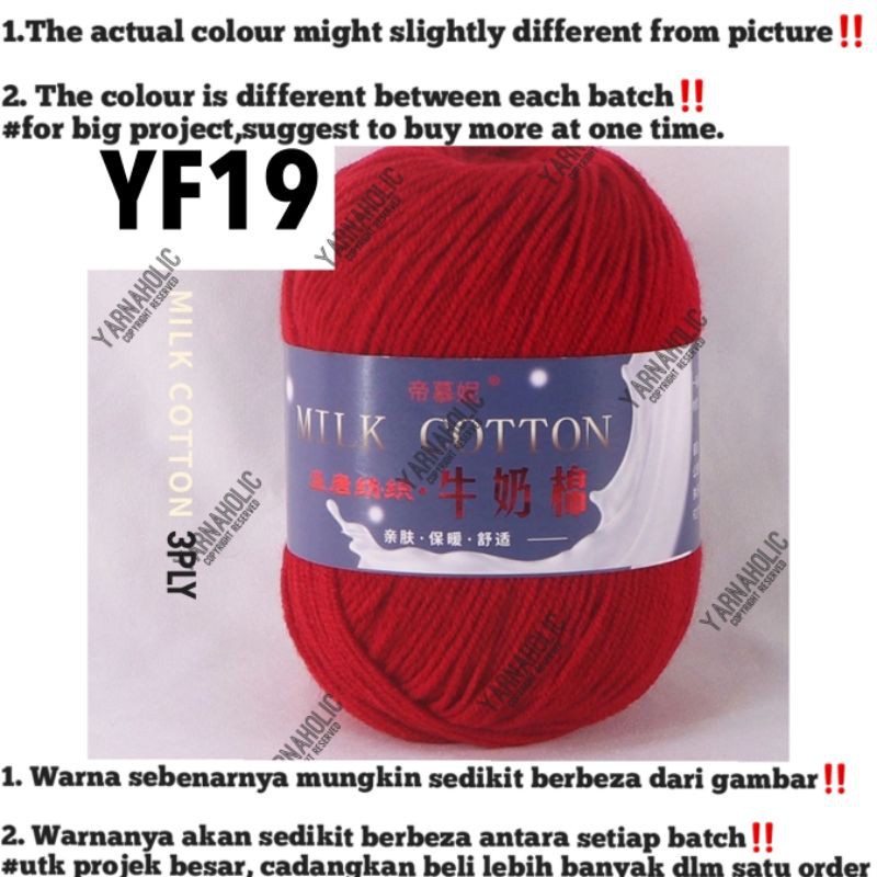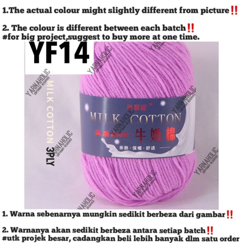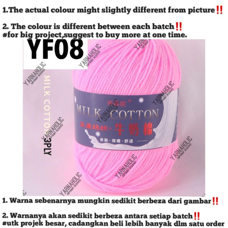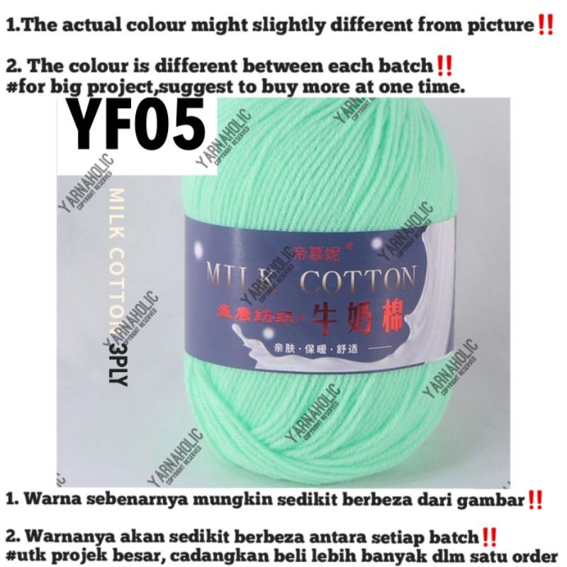 48 Warna Benang Kait Milk Cotton Yarn 3ply/ 3ply Yarn Milk Cotton Knitting Yarn (YF01-YF48)