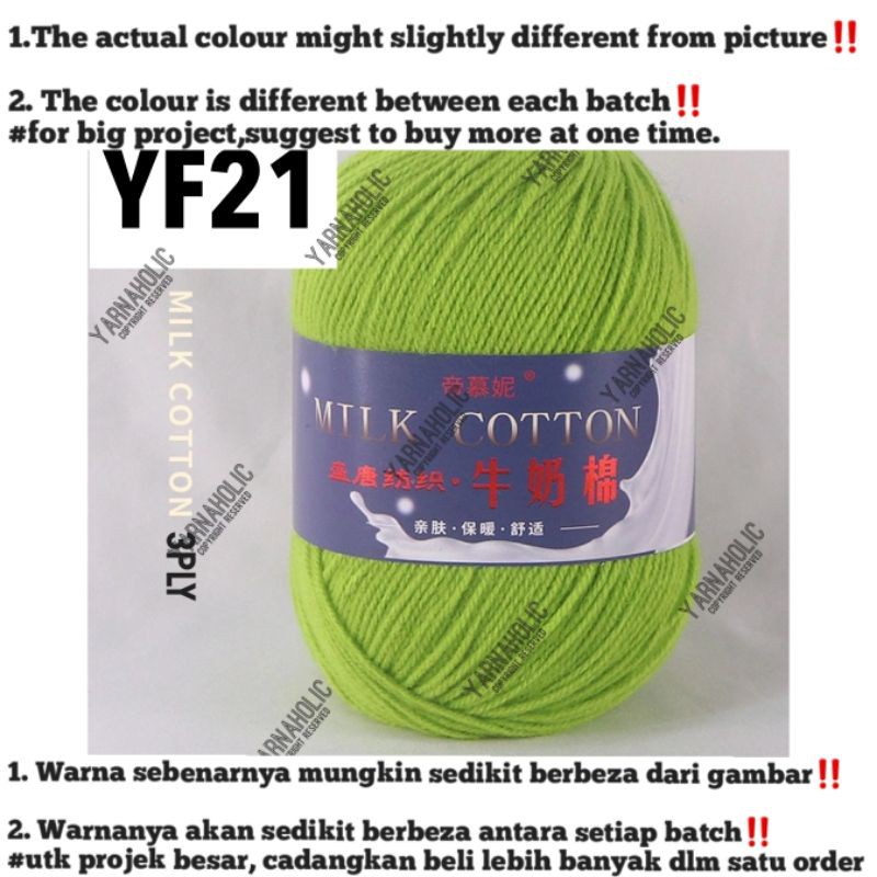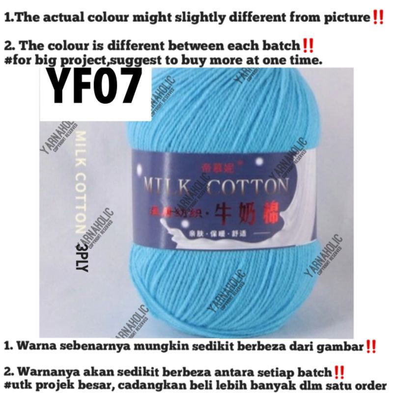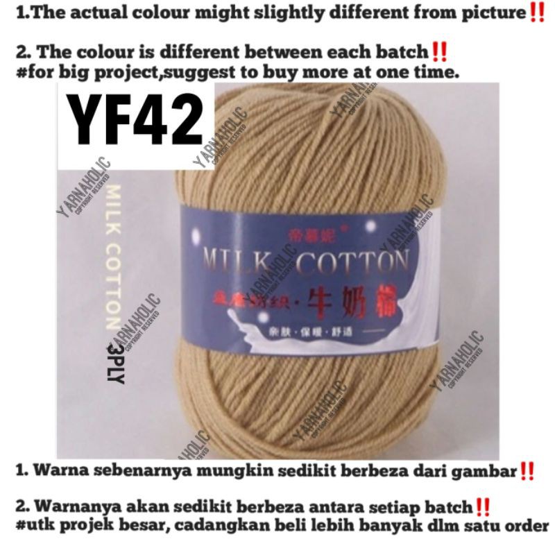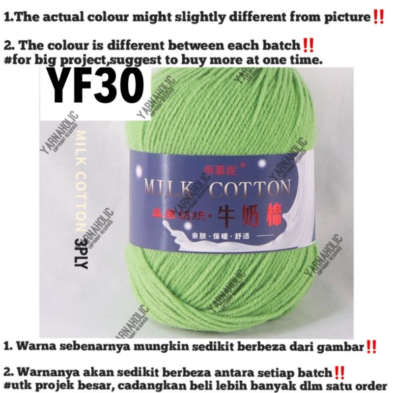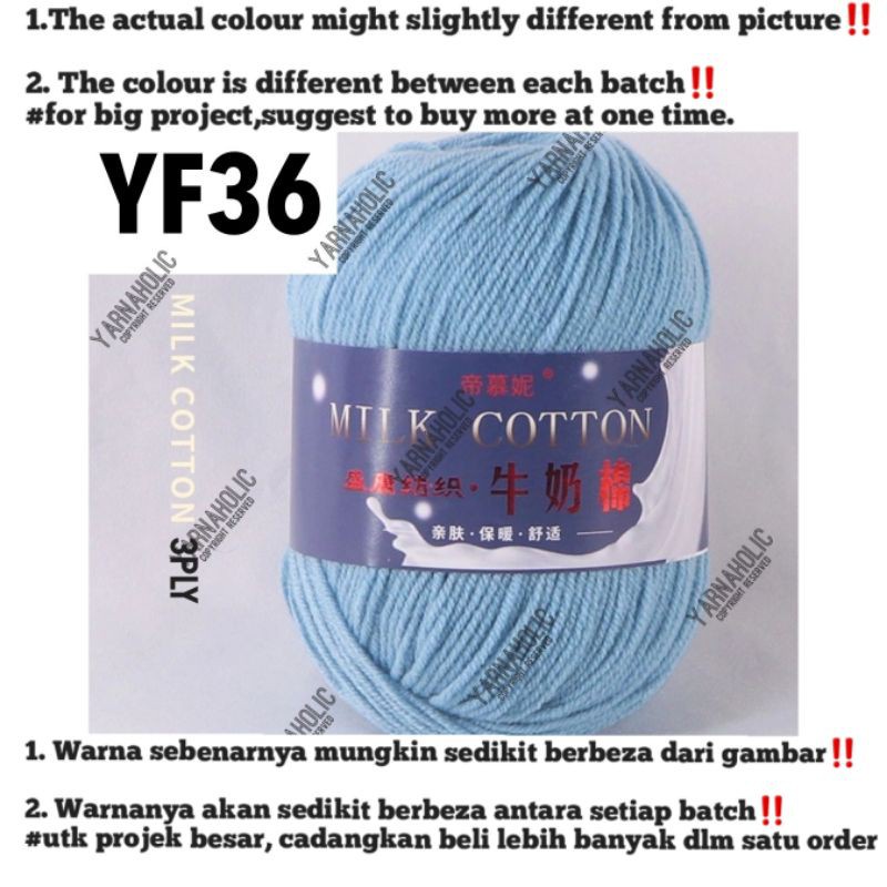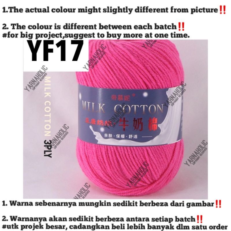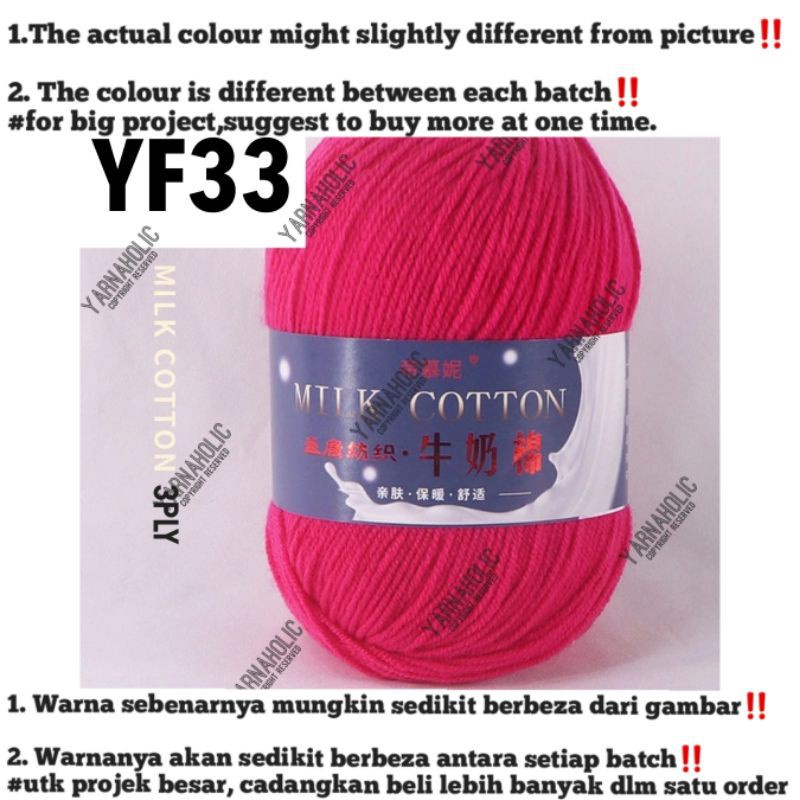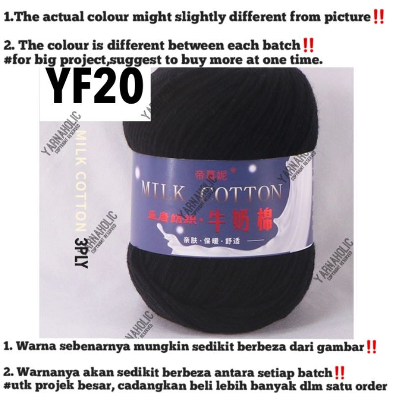 48 Warna Benang Kait Milk Cotton Yarn 3ply/ 3ply Yarn Milk Cotton Knitting Yarn (YF01-YF48)