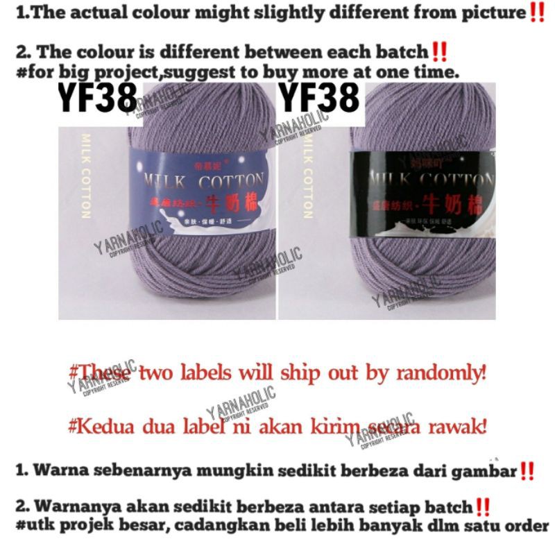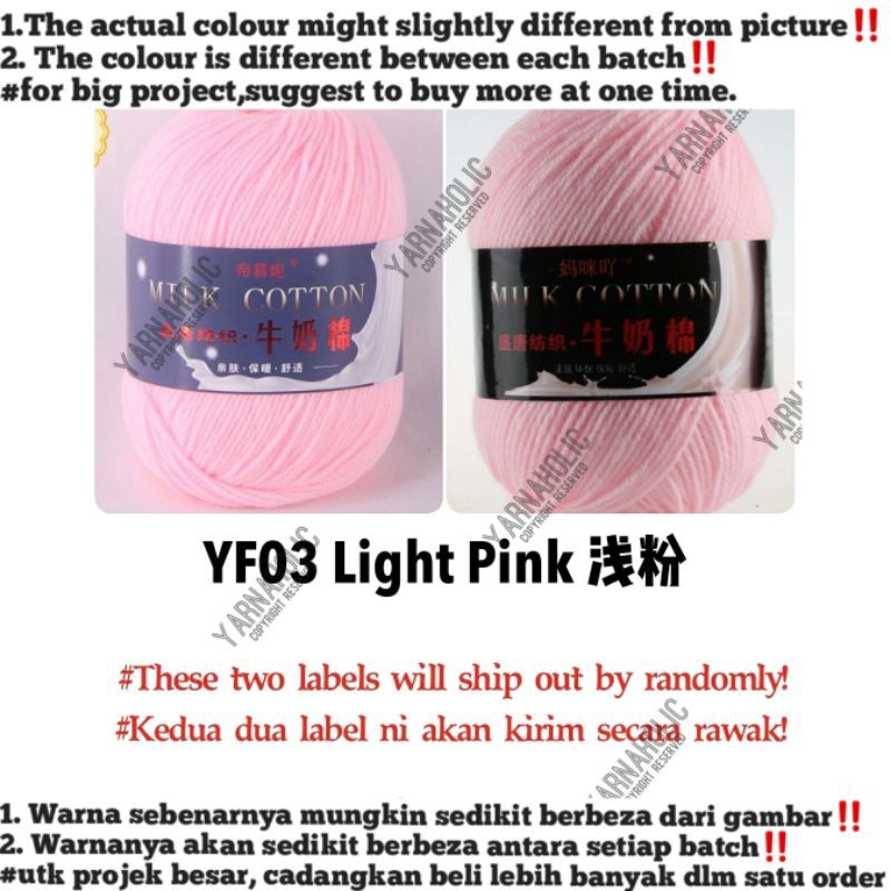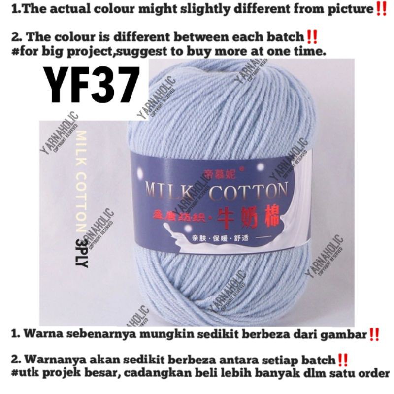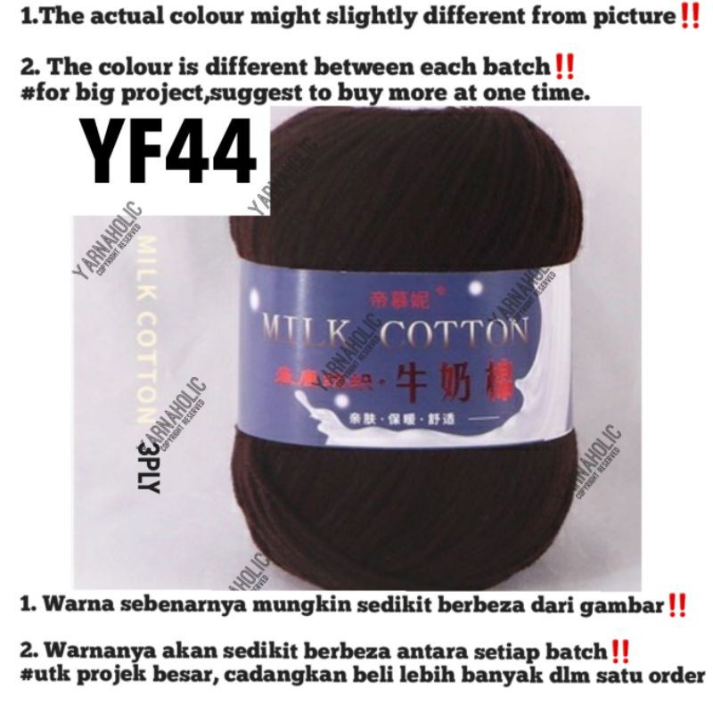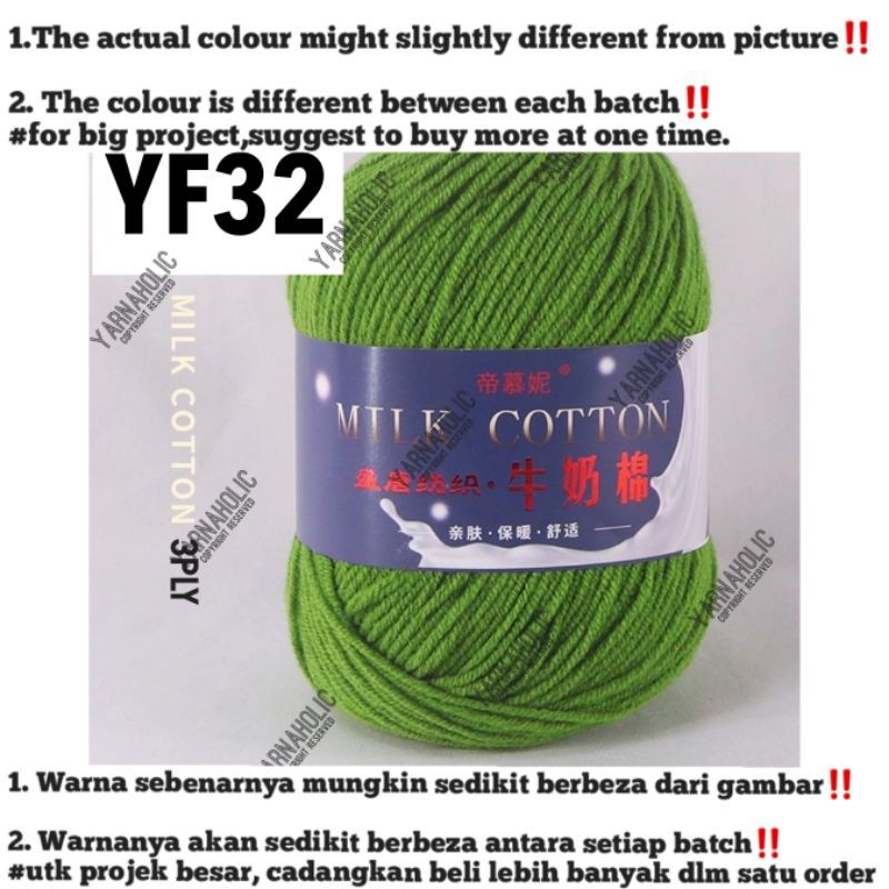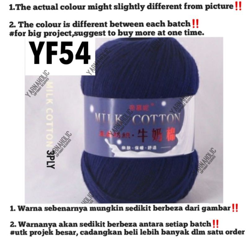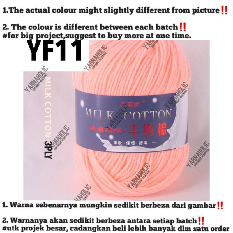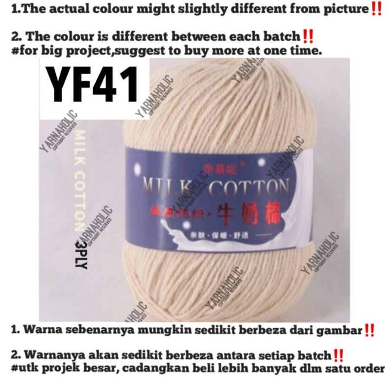 48 Warna Benang Kait Milk Cotton Yarn 3ply/ 3ply Yarn Milk Cotton Knitting Yarn (YF01-YF48)