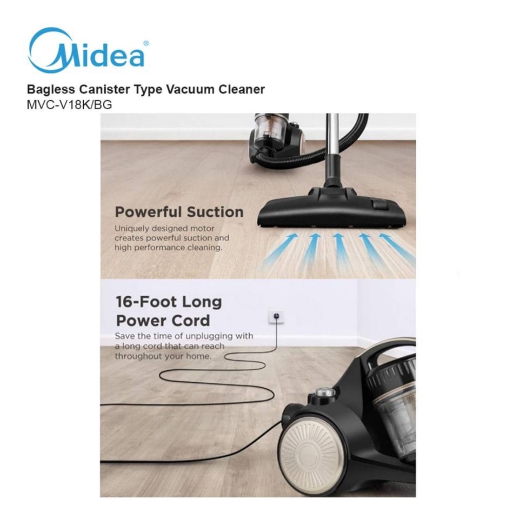 Midea Penyedut Debu Bagless Vacuum Cleaner With HEPA Filter (1800W) MVC-V18K-BA MVC-V18K-BG