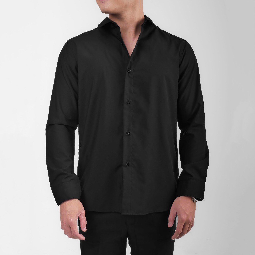 KEMEJA Heyplain Black Long Sleeve Slimfit Shirt - Men's Long Sleeve Shirt Kemeja Lelaki Lengan Panjang
