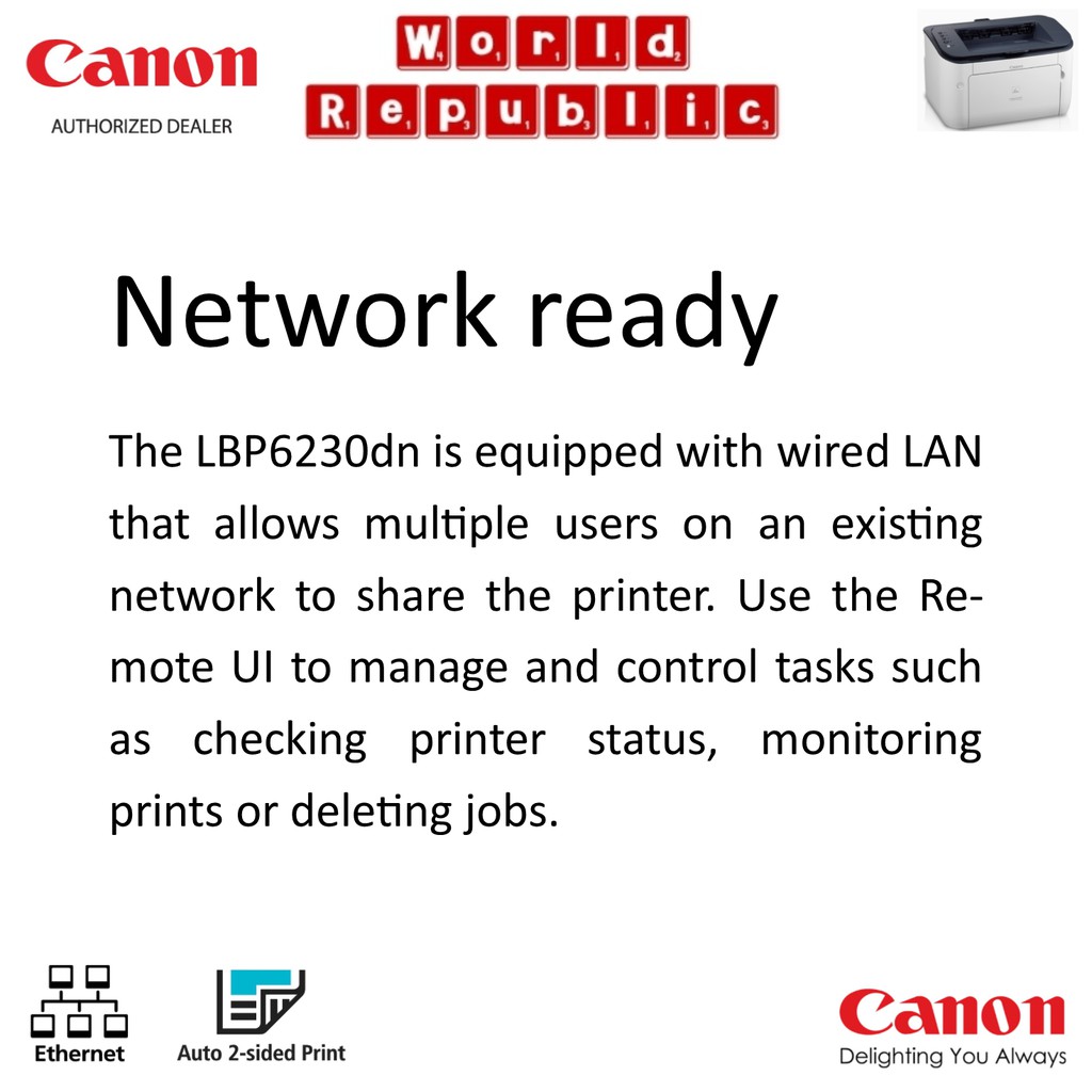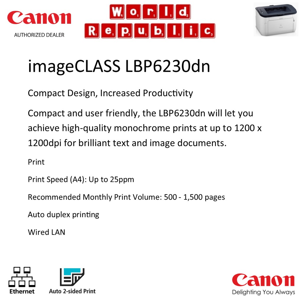 Canon LaserJet Printer imageCLASS LBP6230dn Compact Design, Increased Productivity - Monochrome Laser Printer