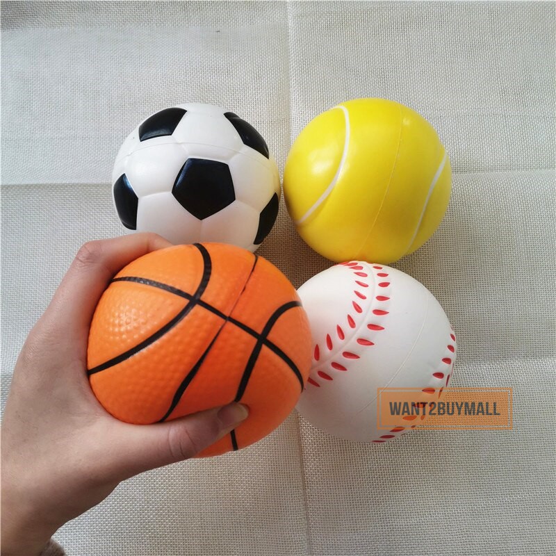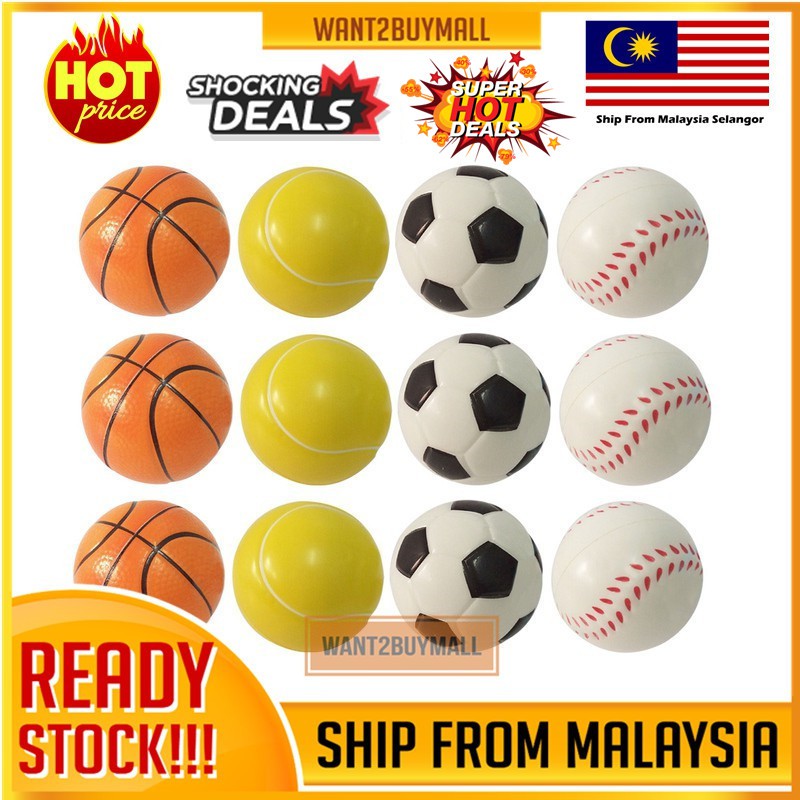 🇲🇾 63/100mm Basketball Baseball Football Tennis Exercise Soft Elastic Squuze Stress Reliever Kids Small Foam Ball Toy