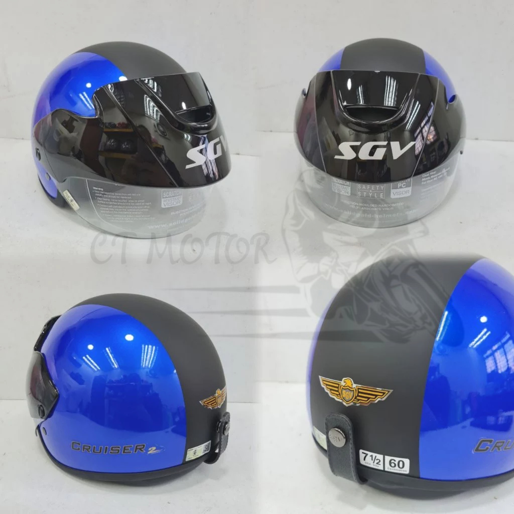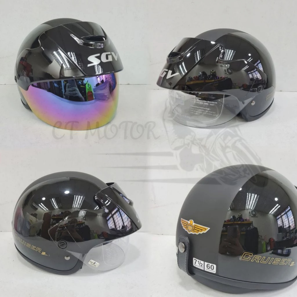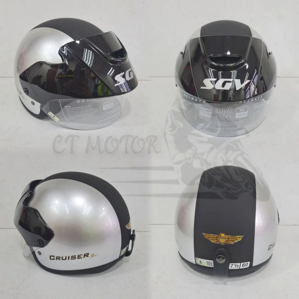 Topi Keledar SGV Cruiser Motorsikal Original Sgv separuh Kura Topi dengan Visor SIRIM LULUS
