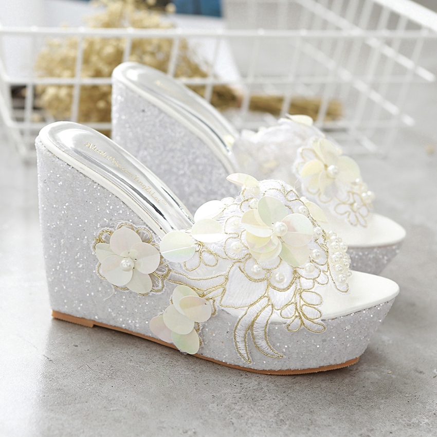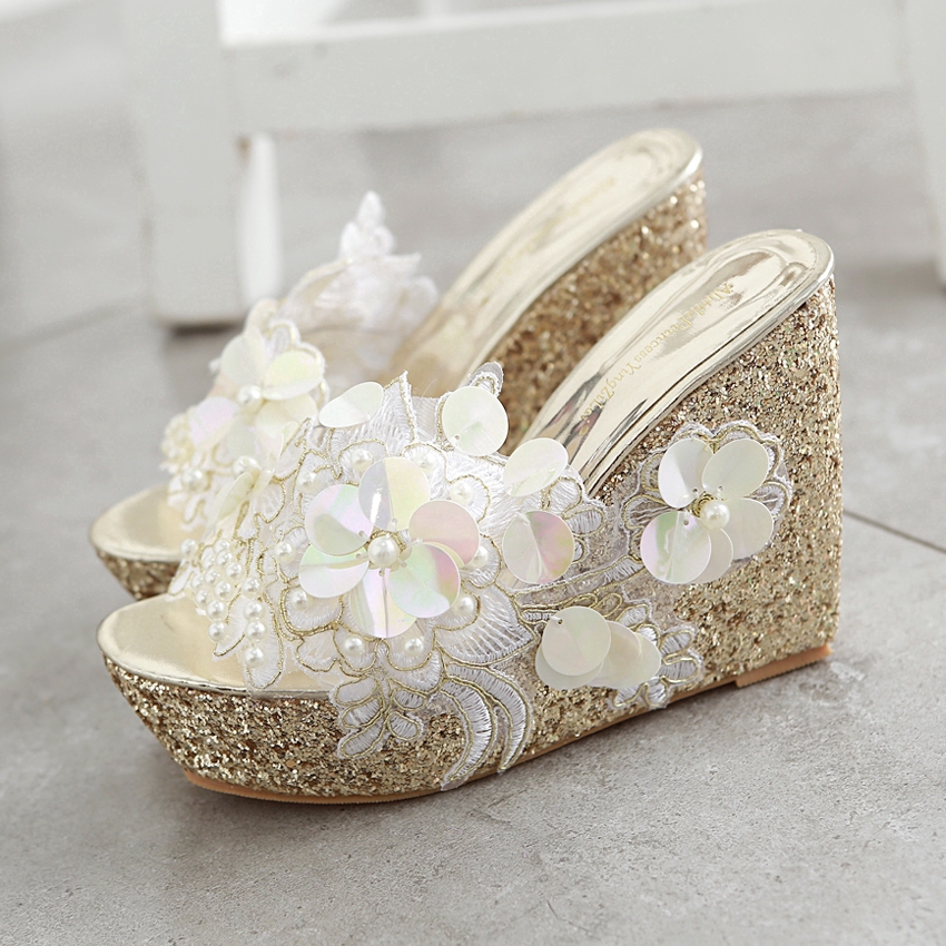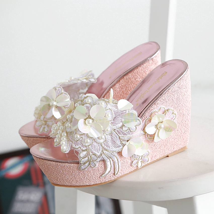 New Summer Flower decoration Platform Wedges Sandals Women