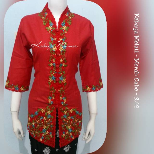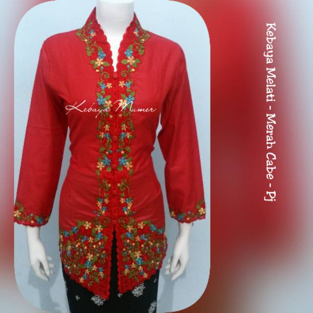 MERAH Ready-made Kebaya. Encim Kebaya. Encim Kebaya Jasmine Kebaya. Kebaya Becomes Embroidered Kebaya. Red Kebaya