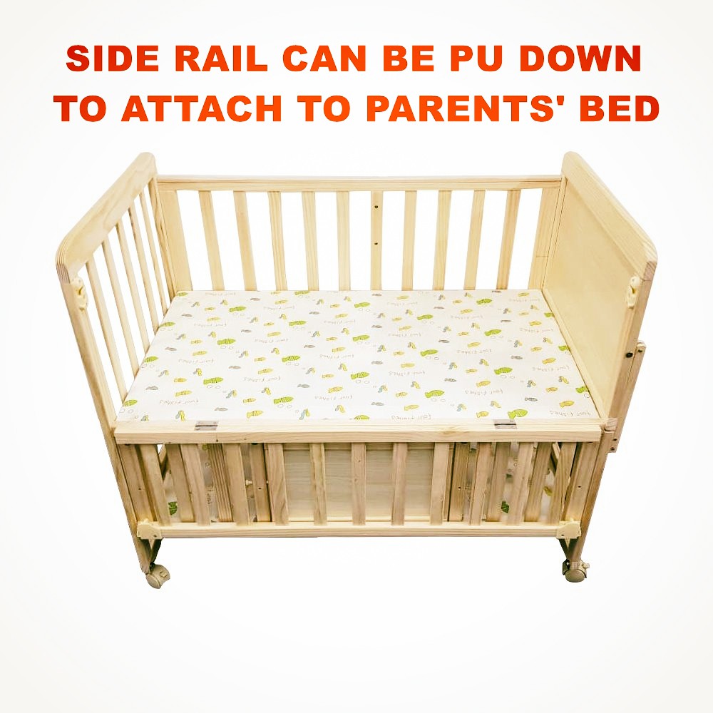 【Free Mosquito Net】 HA228 Premium 2 in 1 Nontoxic Paintless Natural Easel Wooden Cradle Baby Cot