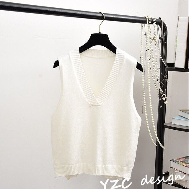 VmewSher Knitted Vest Women Sweater Sleeveless Tank Top Autumn Winter New V-neck Solid Irregular Office Lady Elegant Knitwear