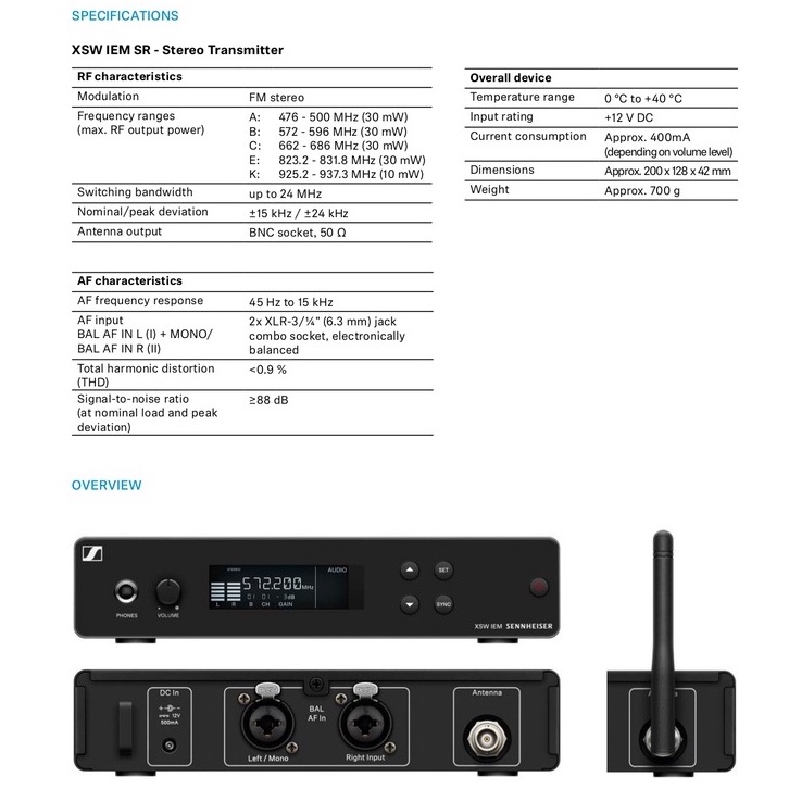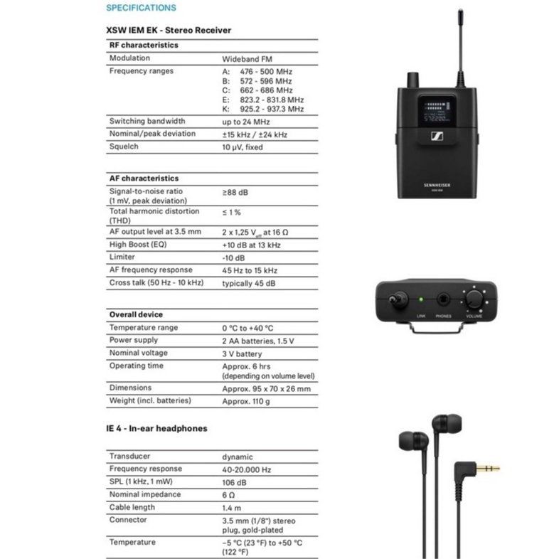 Sennheiser Wireless In Ear Monitor System XSW IEM