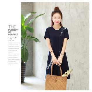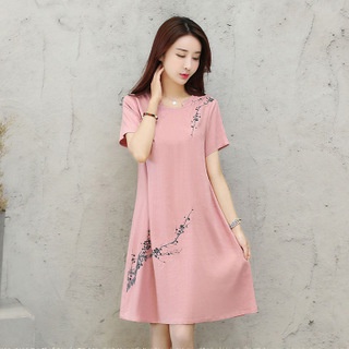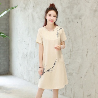 长裙大码女装连衣裙 dress korean style women dresses New Summer Large Size casual dress for Women Short Sleeved A-line Skirt Temperament loose dress连身裙