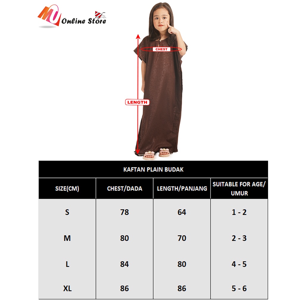 MU BAJU KAFTAN KELAWAR PLAIN KANAK KANAK / BAJU KELAWAR KOSONG / KAFTAN PLAIN CANDY COLOURFUL / GIRLS PLAIN SLEEPWEAR