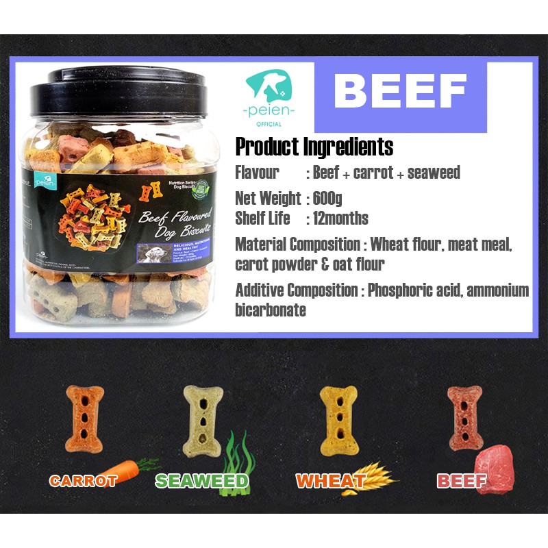 PET PEIEN Dog Biscuit Cookies For Dogs Assorted Flavours (600g)
