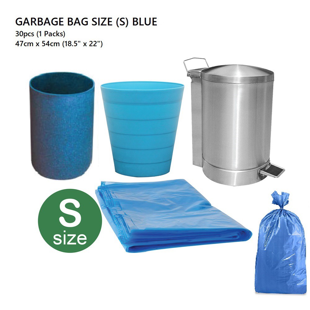 GARBAGE BAGS/Plastik Sampah Karung Sampah Beg (S) 47CM X 54CM (BLUE) - 30 PIECES