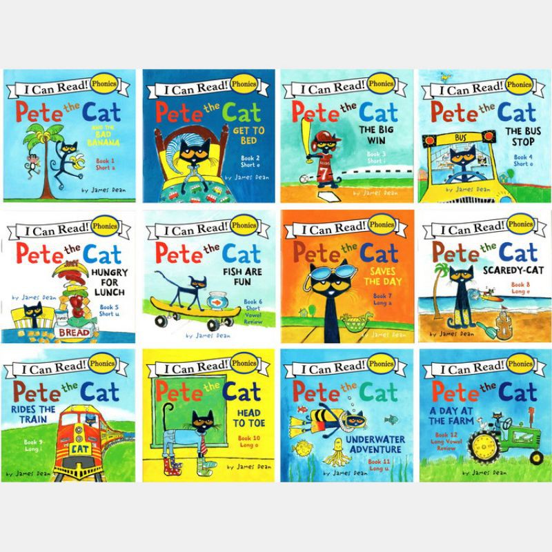 READY STOCK-(WITH BOX)12 books Pete the Cat Phonics I Can Read Pete Cat kids english story book