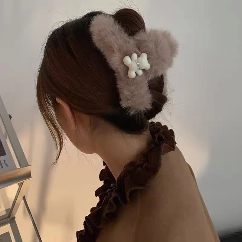New plush large grab clip autumn and winter girls' hair accessories temperament cute clip