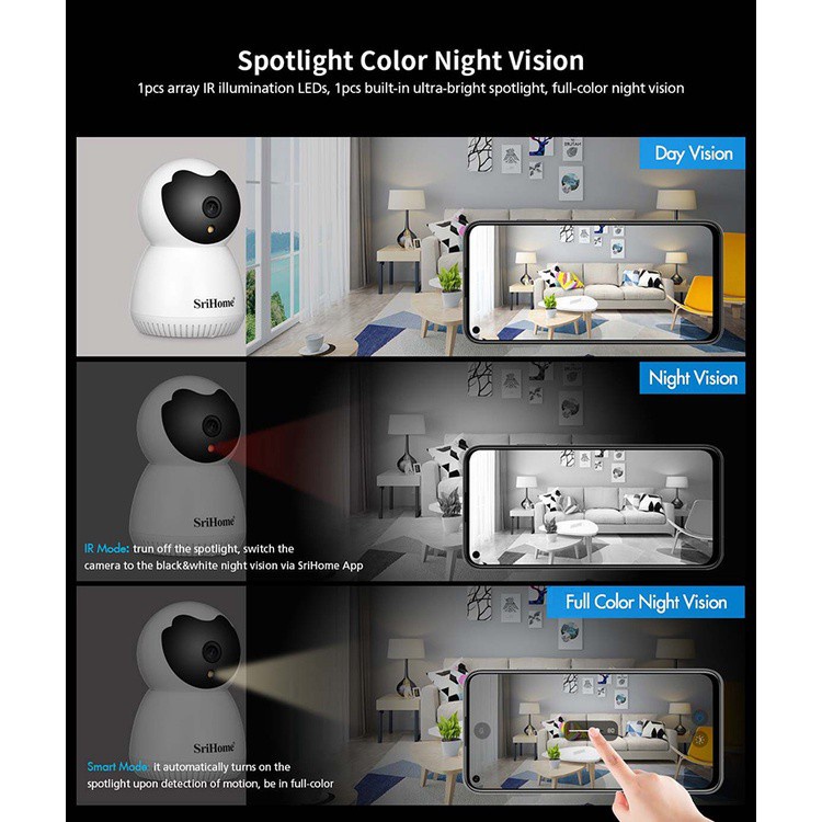 SriHome SH036 1296P (2340x1296) 3MP Super HD WiFi Camera CCTV IP Security Cam IR Night Vision + Full Color Night Mode