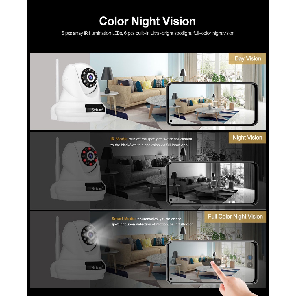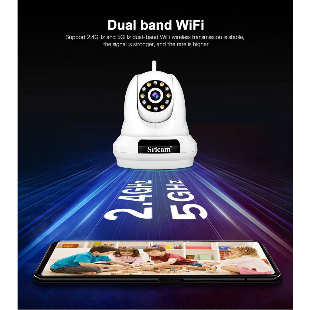 (5MP) 2K Camera CCTV 5G WiFi SriHome SP018 PTZ Audio Indoor IP Security Video Cam Recorder IR Full Color Night Vision