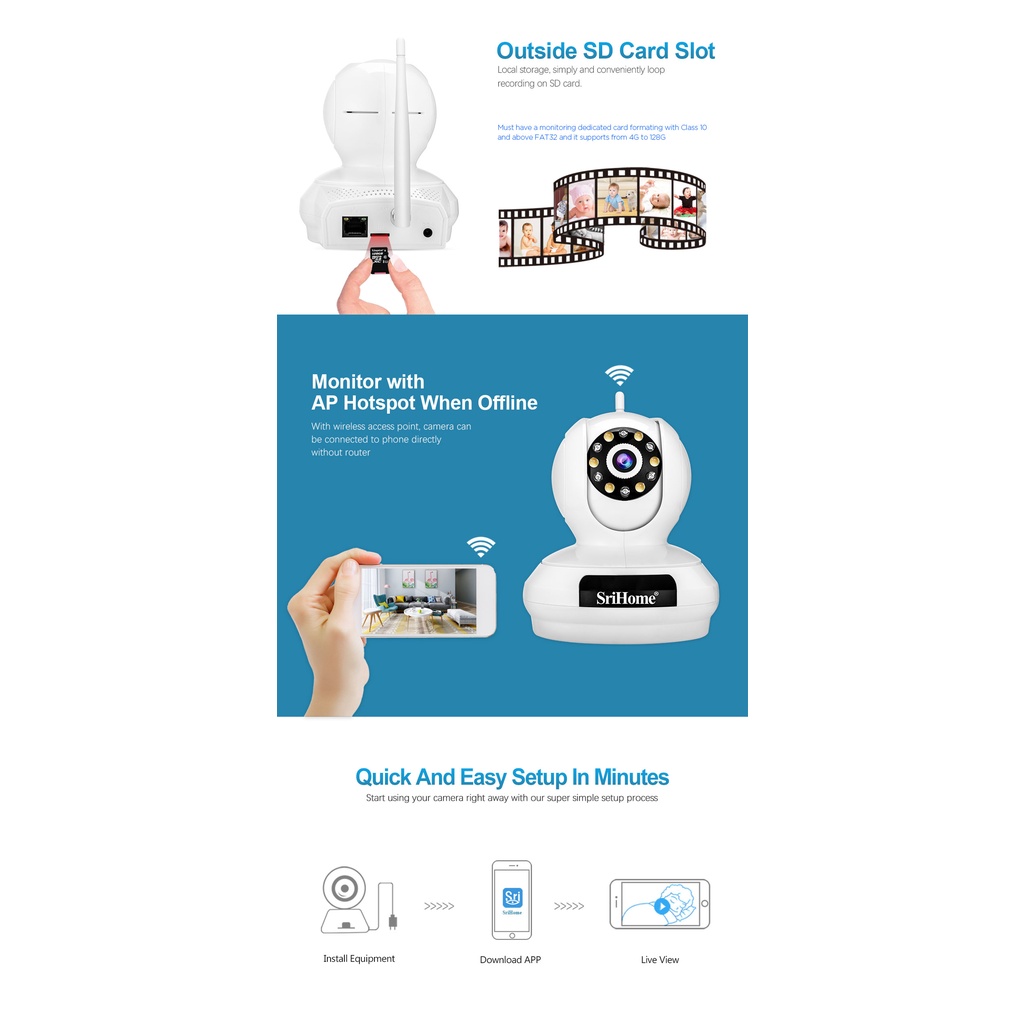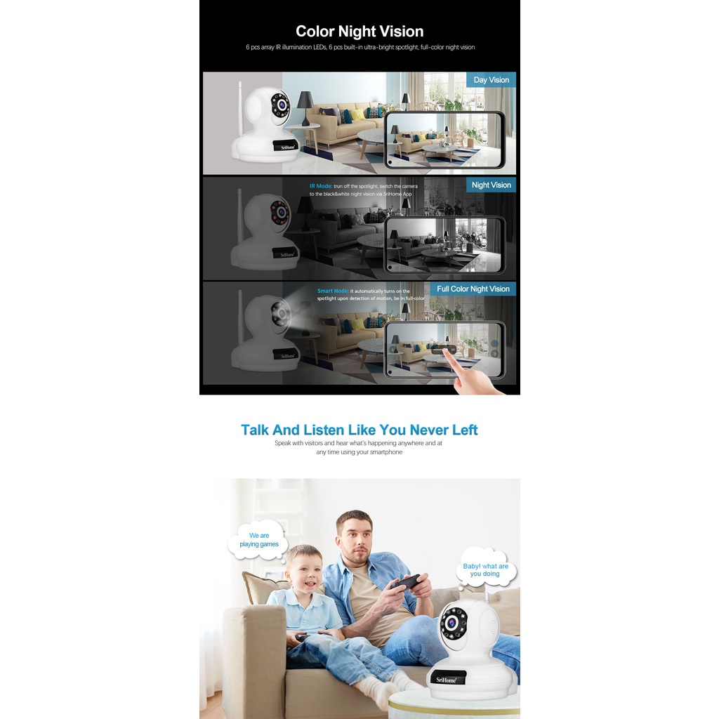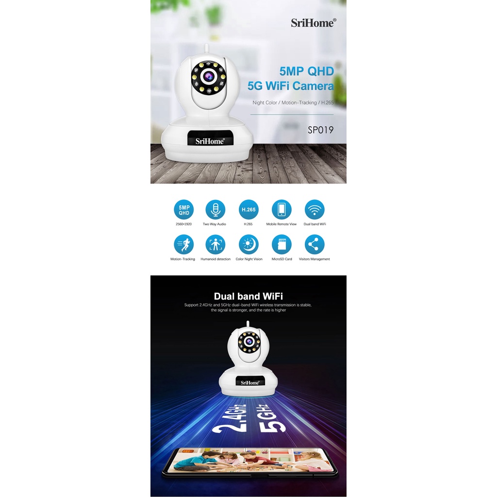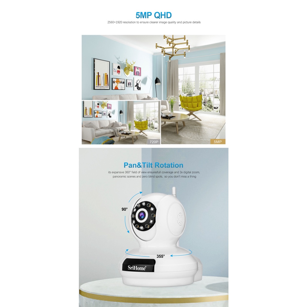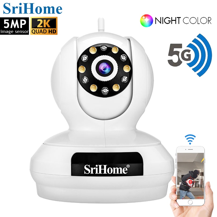 (5MP) 5G WiFi SriHome SP019 2K Camera PTZ Two Way Audio Indoor CCTV IP Security Video Recorder + Infrared + Full Color