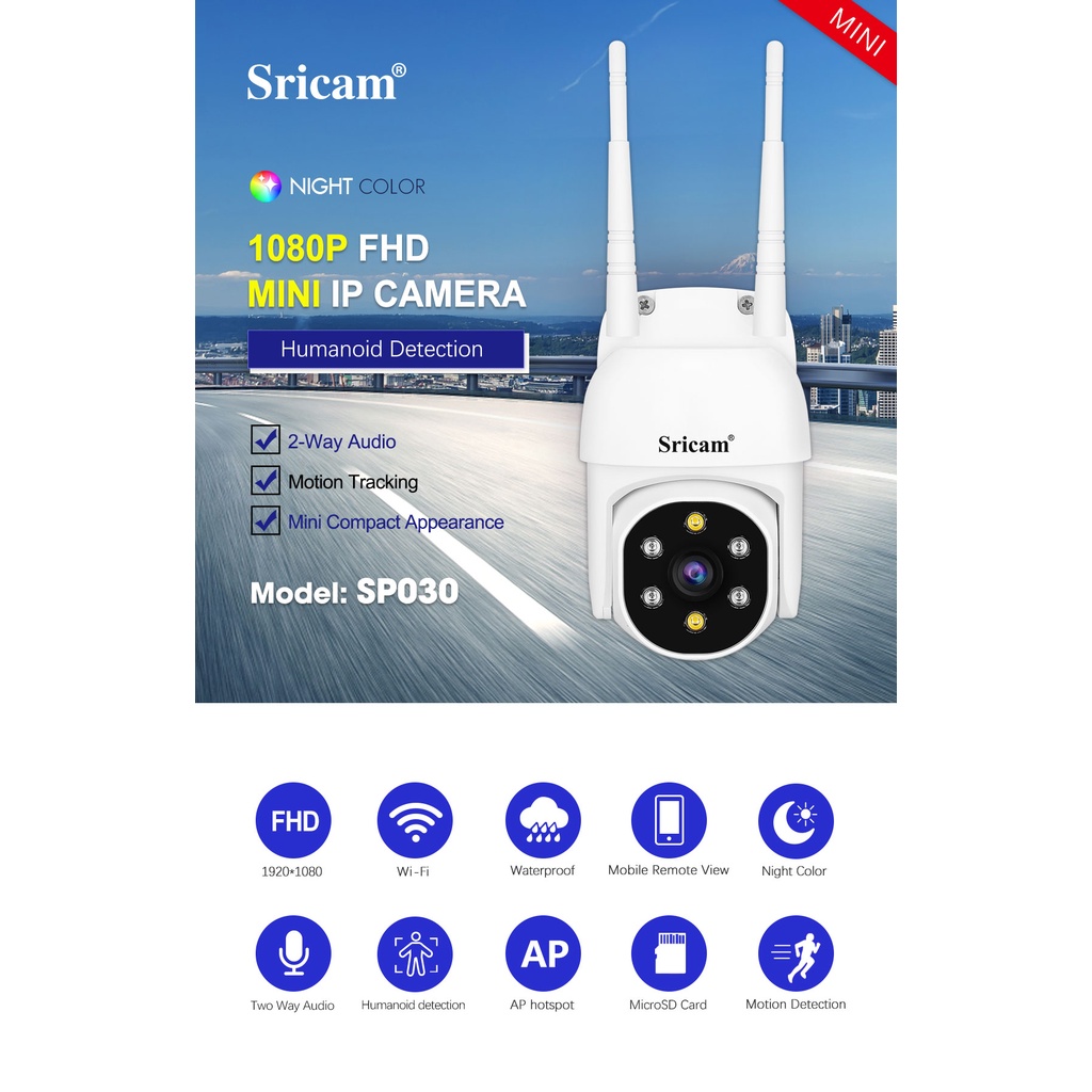 Mini Compact Wifi CCTV Camera SriHome SP030 1080P FHD Video Recorder PTZ IP Security Surveillance Cam Two-Way Audio