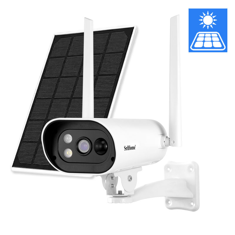 Solar CCTV Outdoor SriHome DH003 (4MP) 2K WiFi Camera Wireless Battery Powered + Solar Panel (100% Wired Free)