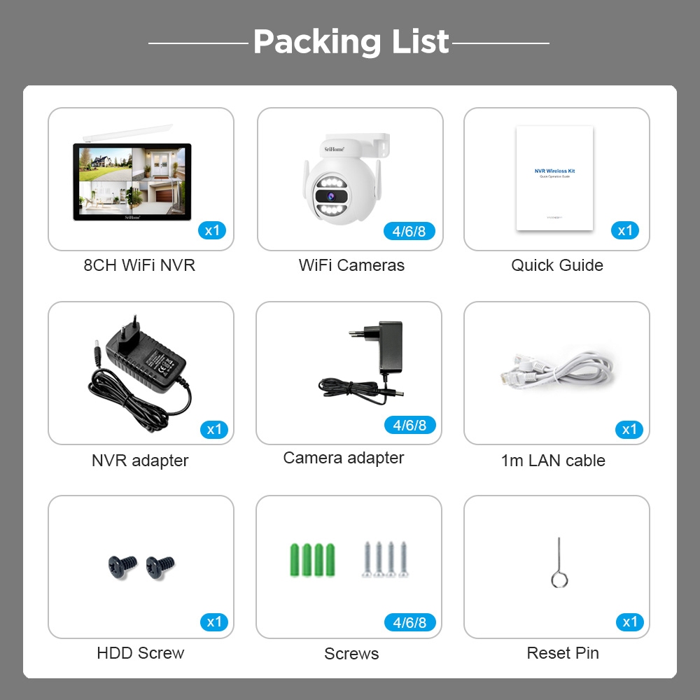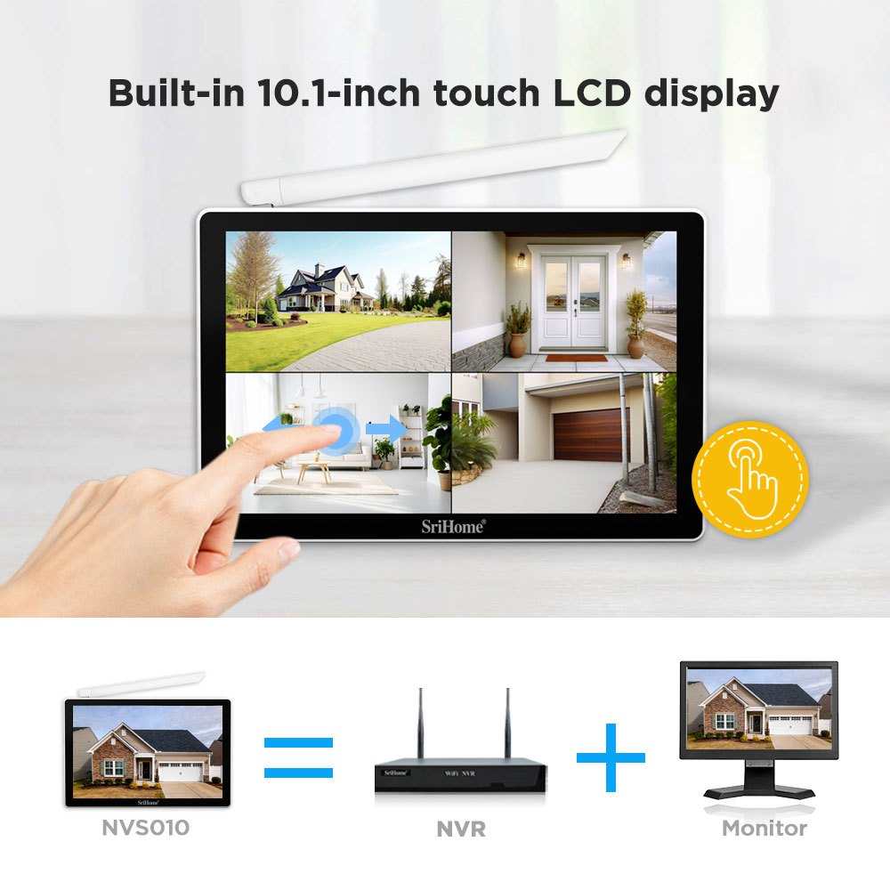 5MP SriHome NVR WiFi Touch Screen Monitor + 4pc 2K PTZ Camera Night Vision 2-Way Audio NVS010-IPC047