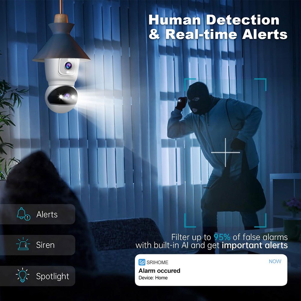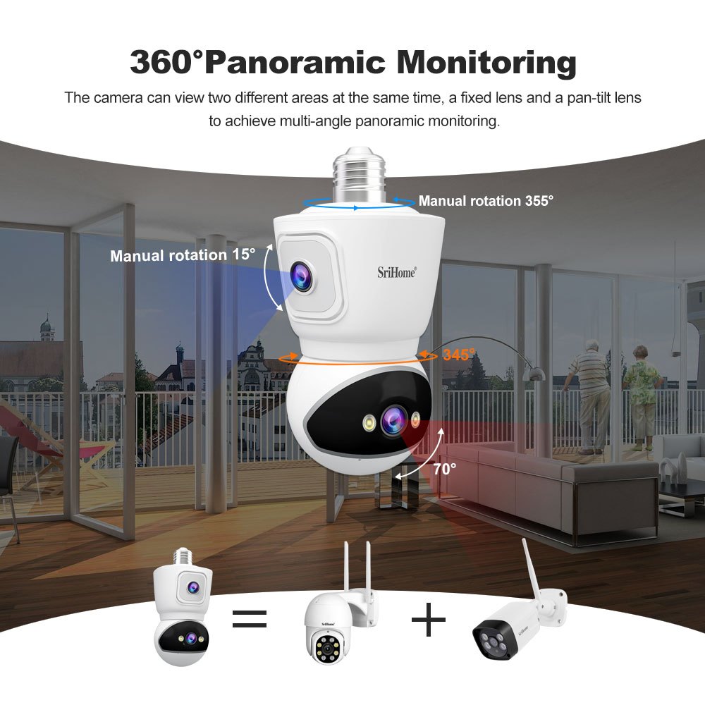 SriHome SH067 Bulb Dual Lens Wifi Camera CCTV 1080P FHD 360° Panoramic View E27 Light Socket