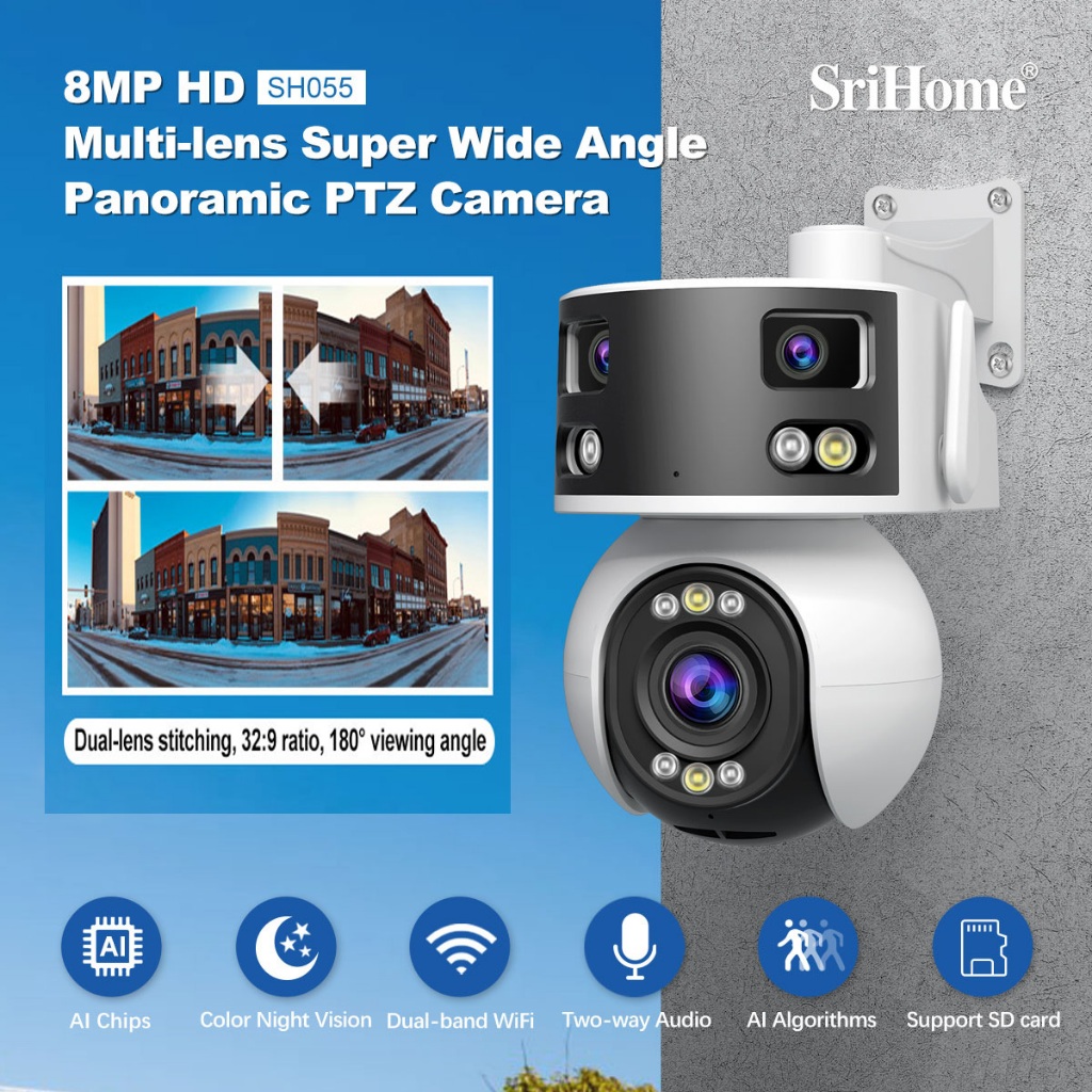 SriHome SH055 Multi-Lens CCTV Super Wide Angle 8MP Panoramic PTZ Panorama Camera