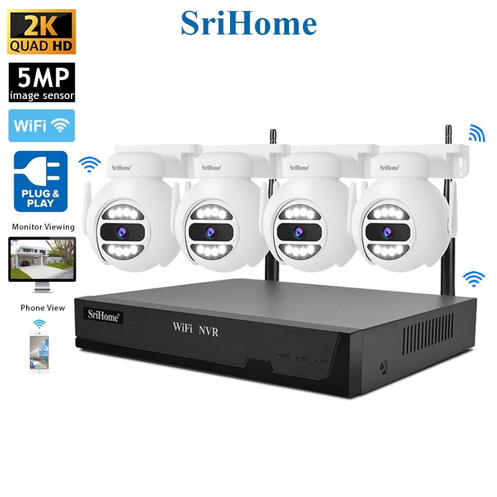 (5MP) SriHome NVS001E-IPC047 NVR WiFi Wireless CCTV Security System + 4pcs 2K Camera PTZ Video Record (Plug & Play)