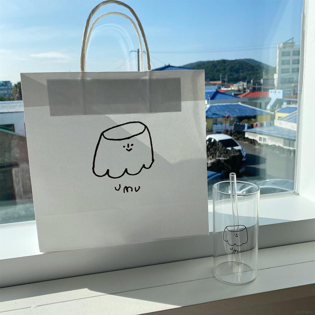 Ins Korean Style Glass Cup Heat-Resistant Milk Coffee cup With Straw Transparent Coffee Milk Tea Mug Kawaii Water Cups Children Drink Bottle