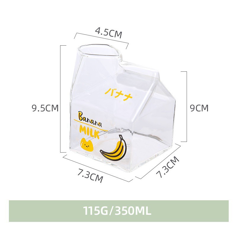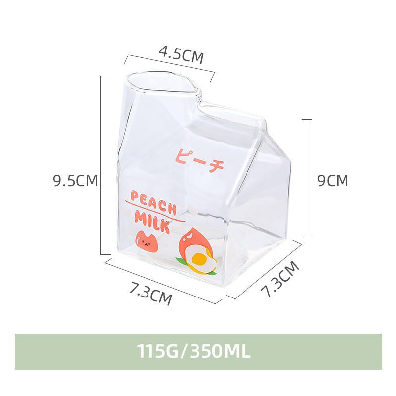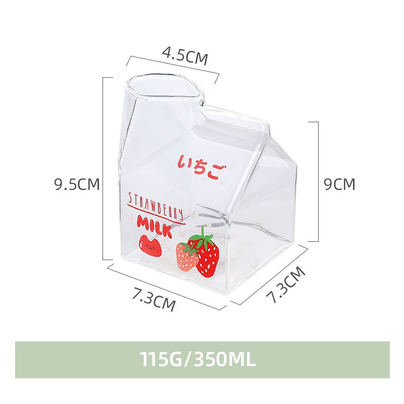 380ml Kawaii Square Milk Carton Glass Cup Cute Strawberry Creative Breakfast Cup For Home Portable Student Transparent Milk Cups