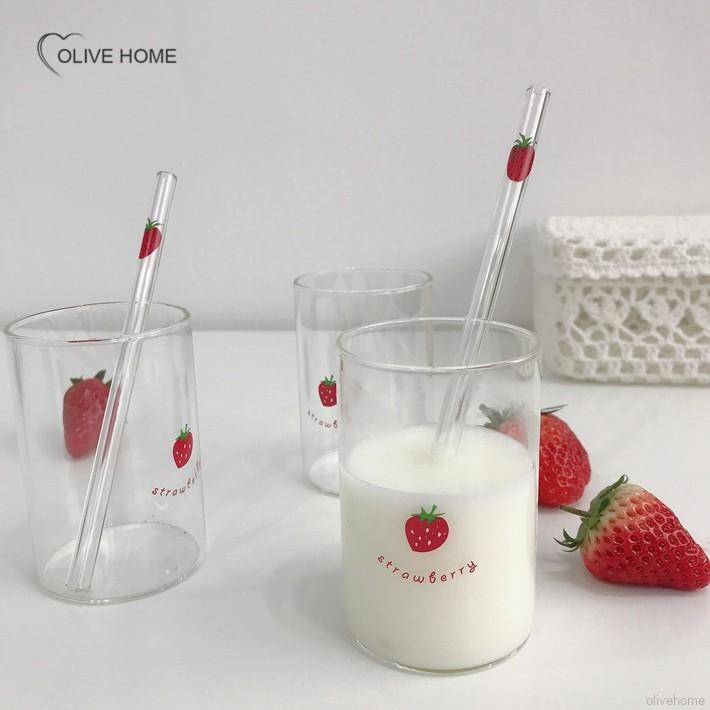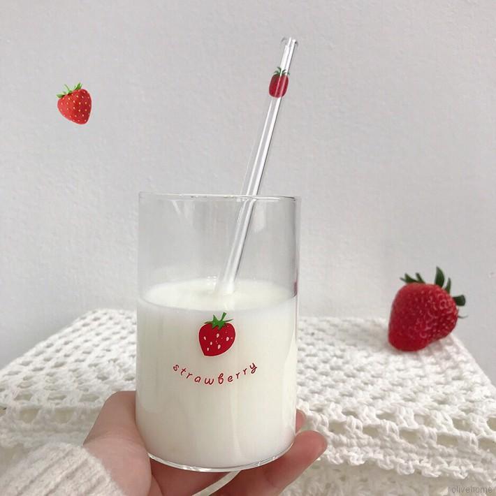 Cute Glass Cup Water Bottle with Straw Transparent Strawberry Ins Korean Style Coffee Cup Gift Mugs Milk Bottle Kawaii Bottle