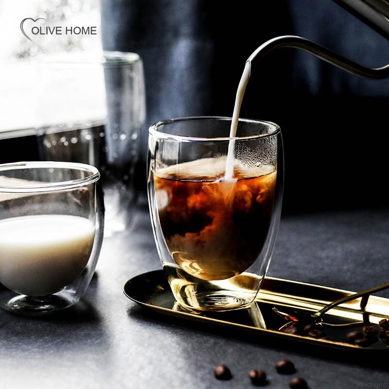 Olivehome Double Wall Glass Clear Handmade Heat Resistant Tea Drink Cups Coffee Glass Cup Mug Healthy Drink Coffee Mug Insulated Shot Glass