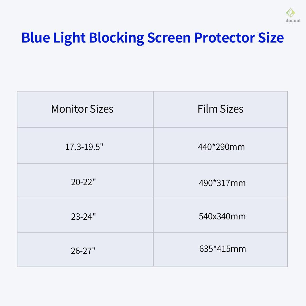 D&L Hanging Blue Light Blocking Screen Protector High-transmittance Anti-UV Eye Protection Film for 20-22'' Desktop Monitor