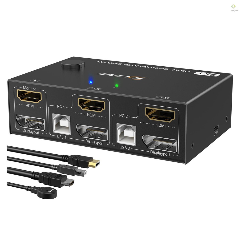 KVM Switch Dual-Monitor Compatible DP/HDMI KVM Switch Supports 4K@60Hz