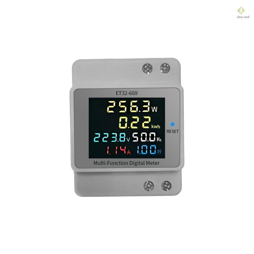 Digital Single Phase Energy Meter Household Electricity Usage Monitor AC40V-300V 100A Power Voltmeter Ammeter Voltage Amps Watt Kwh Frequency Power Factor Meter with LCD Color Scre