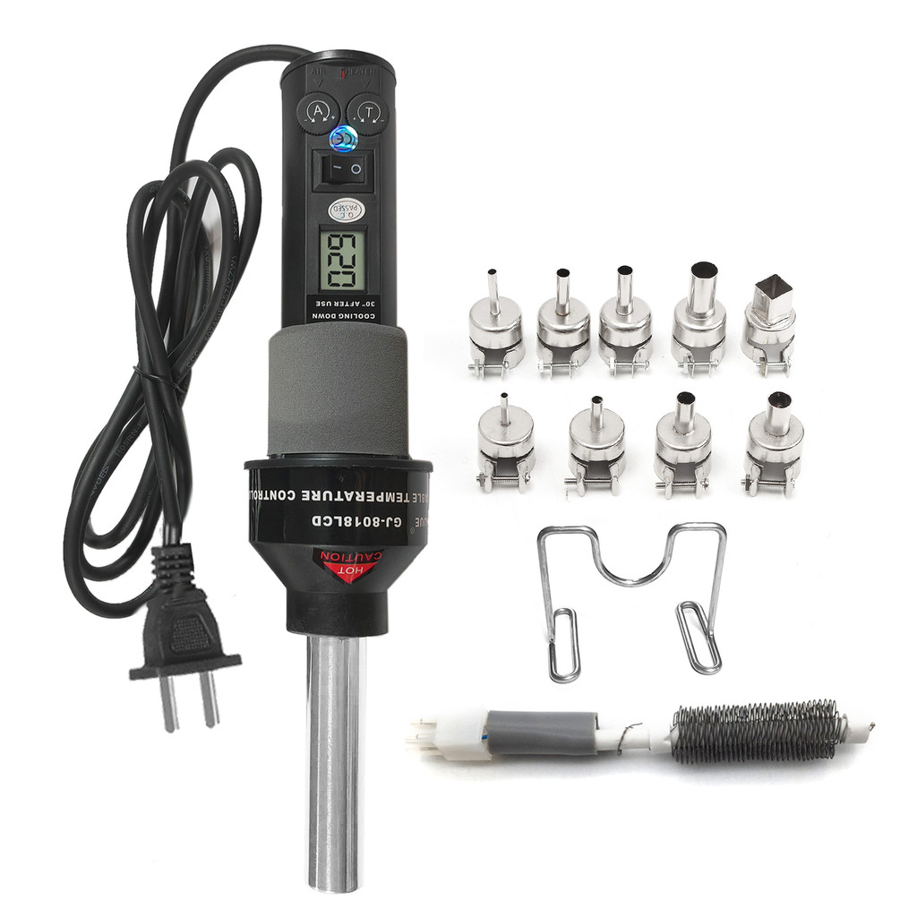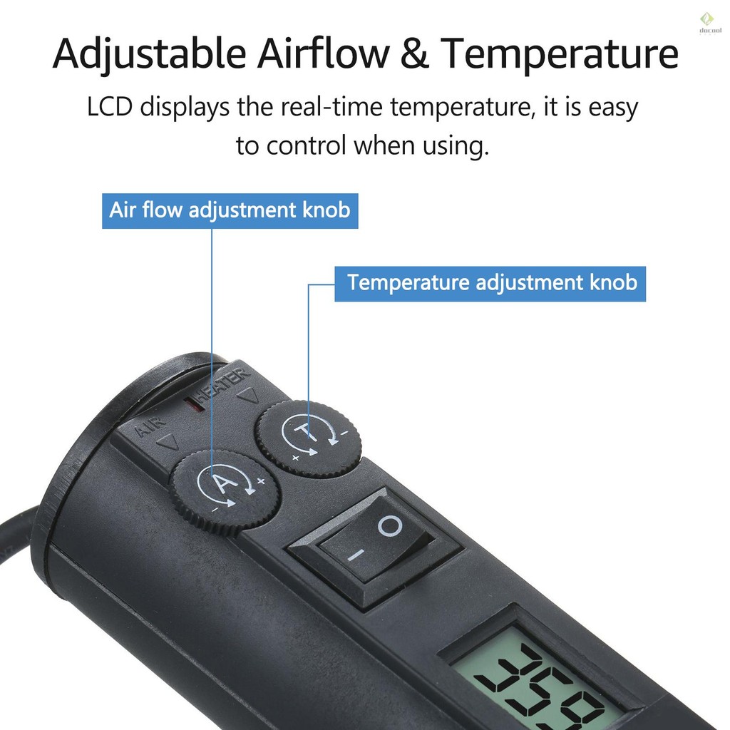 200W Portable Temperature-Controlled Soldering Heat Air Machine 450℃ Hot Air Rework Station SMD Desoldering Tool with Nozzles LCD Digital Display Airflow Control for Electronic Wir