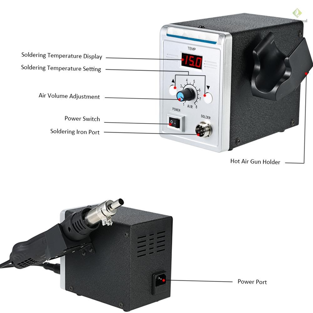 858D 700W High Quality Soldering Station LED Digital Solder Iron Desoldering Station BGA Rework Solder Station Hot Air + Electric Iron Set for SMD SMT DIP