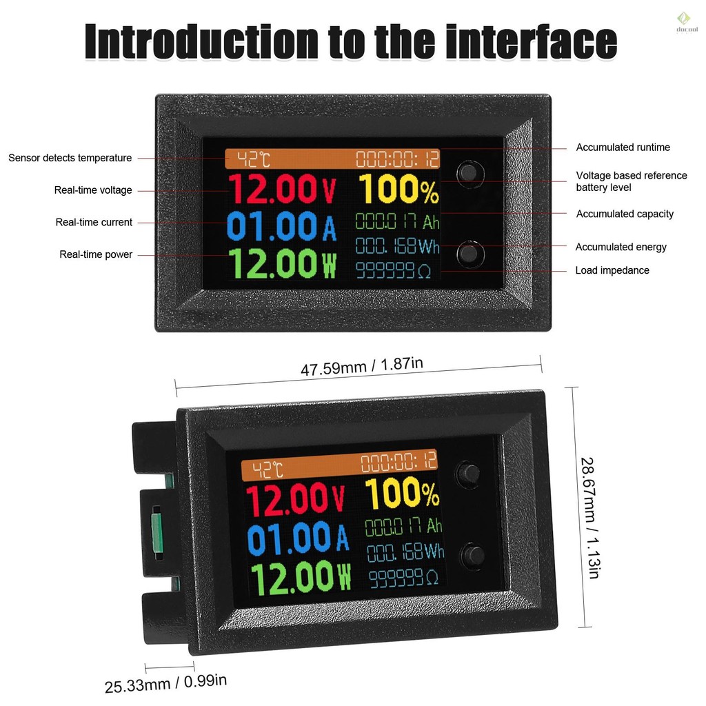 9in1 Multifunction Tester 1.14-inch IPS Color Display Measuring Instrument with Voltage Current Power Impedance Capacity Energy Temperature Running Time Electricity Measurement Sup