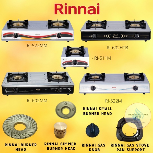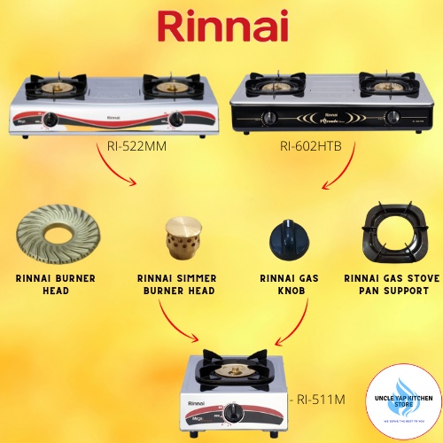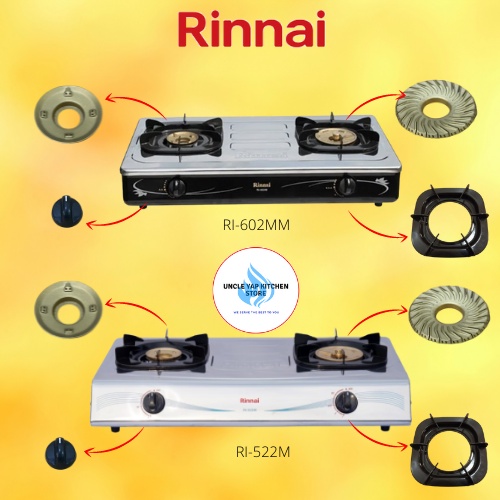 RINNAI GAS STOVE PAN SUPPORT ORIGINAL FOR MODEL RI-602HTB/522M/602M/511M BURNER HEAD SIMMER HEAD GAS KNOB