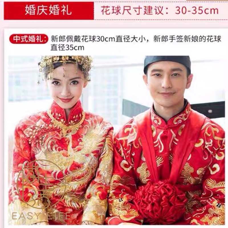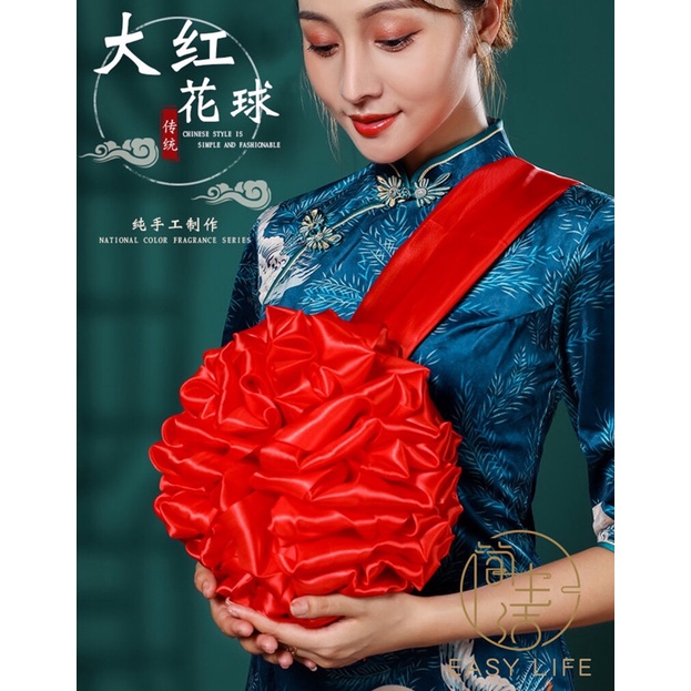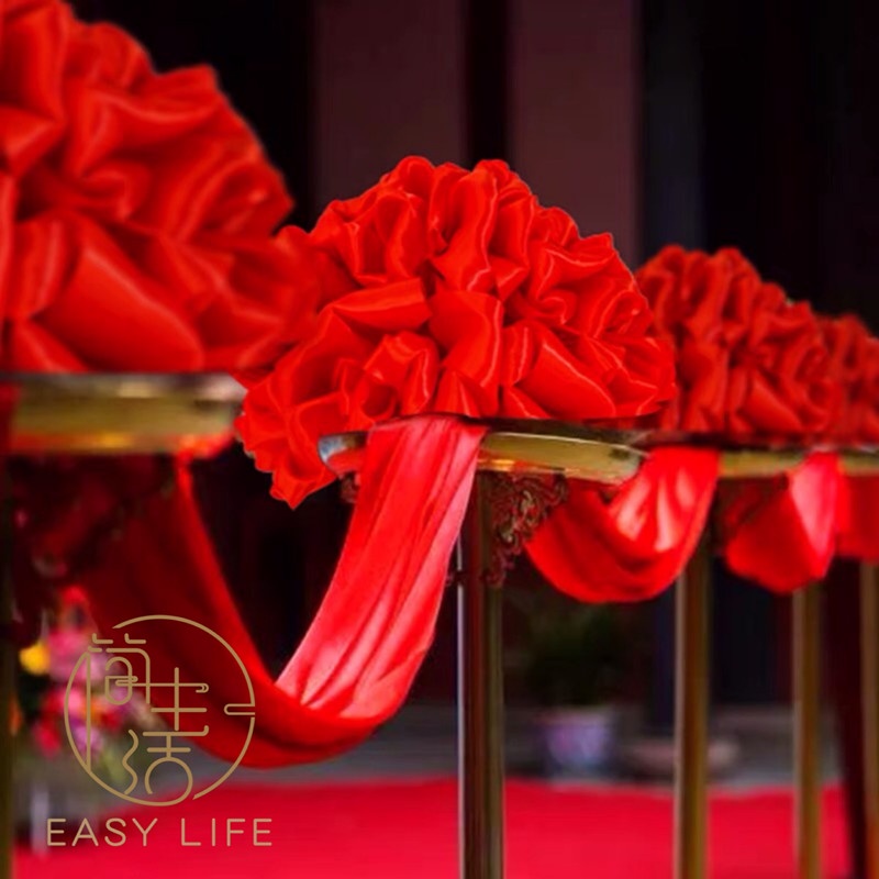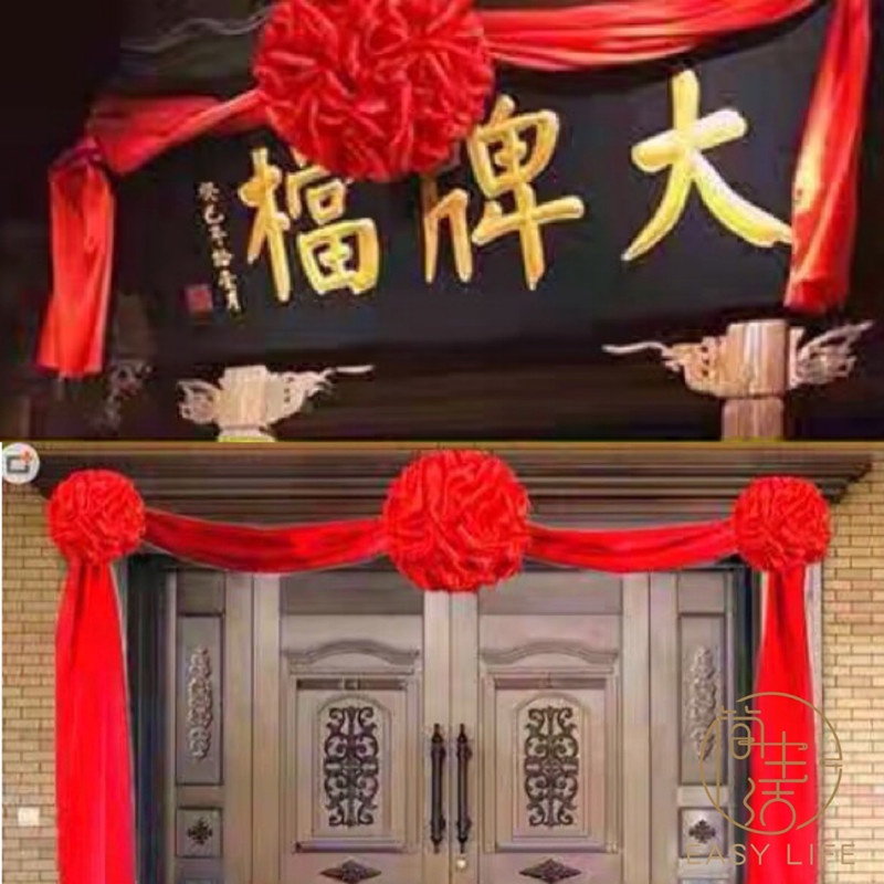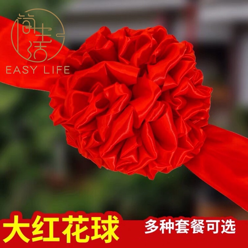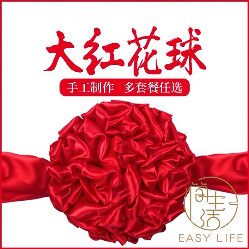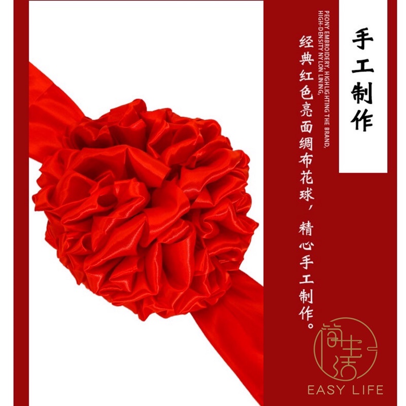 ❤ready stock 现货❤ 大红花球 门彩 结婚 开业剪彩 套装剪彩花球 颁奖剪载 交车 红绸布 红绣球 乔迁 绣球 手工制作红球